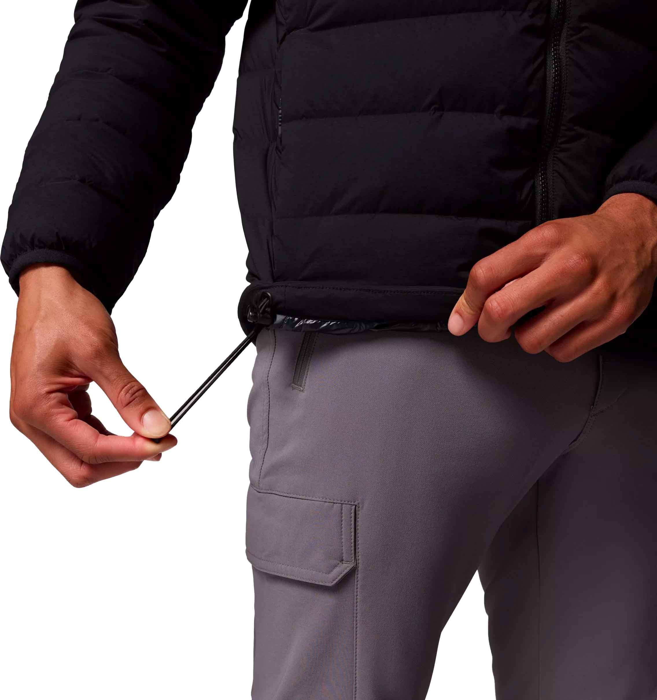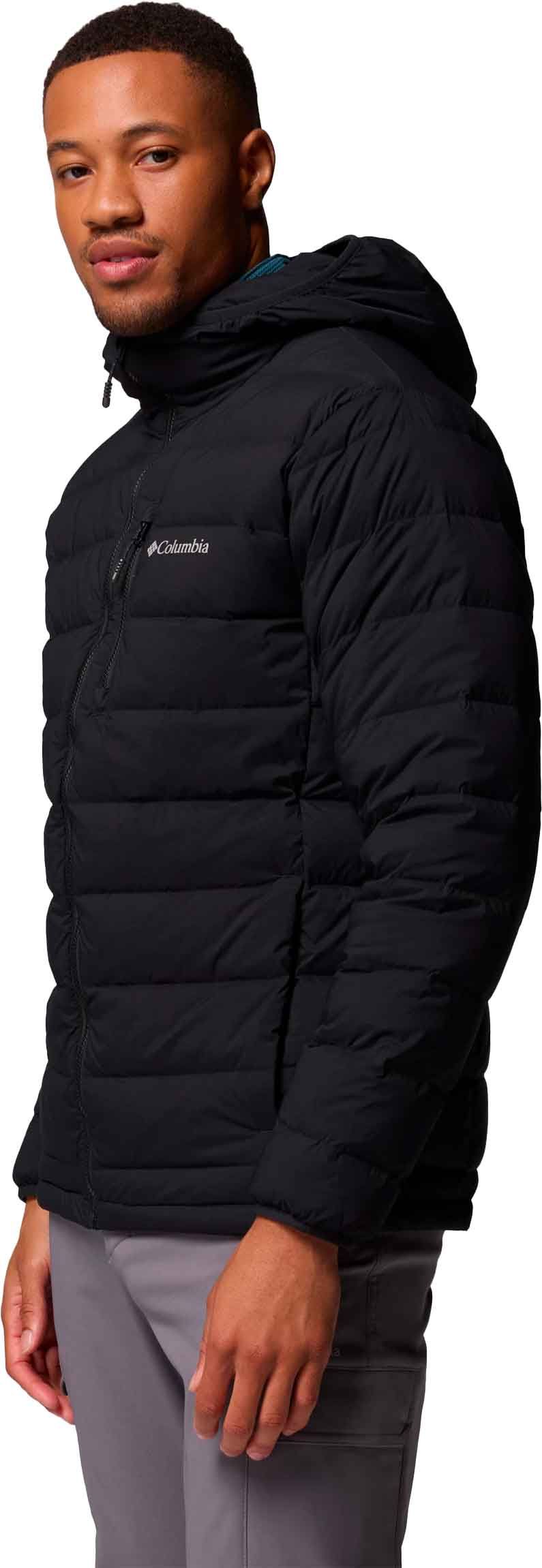 Doudoune Columbia Drift Peak Stretch Down Hooded Jacket homme, isolée en duvet RDS 700 cu.in., thermosoudée, stretch 4 directions, déperlante et coupe-vent pour liberté de mouvement et chaleur durable en montagne.