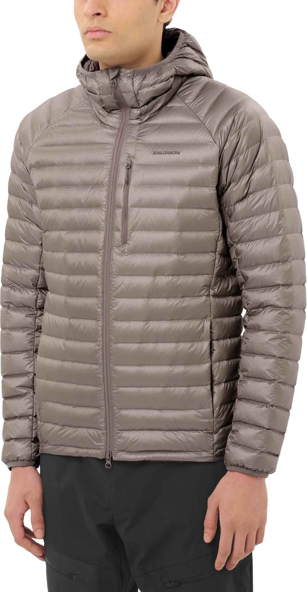 Doudoune Salomon Elixir Micro Down Jacket Iron homme : isolation 800 Cuin et technologie Advanced HeiQ XReflex™ pour un poids minimal, capuche et poches zippées.