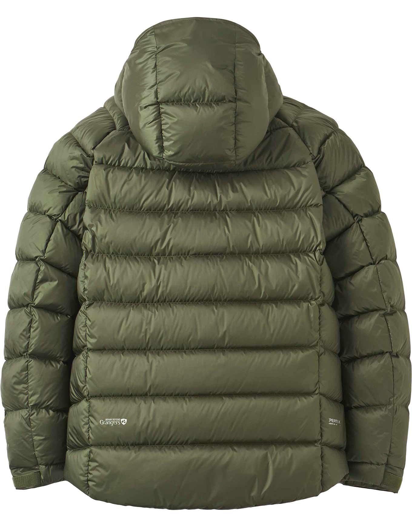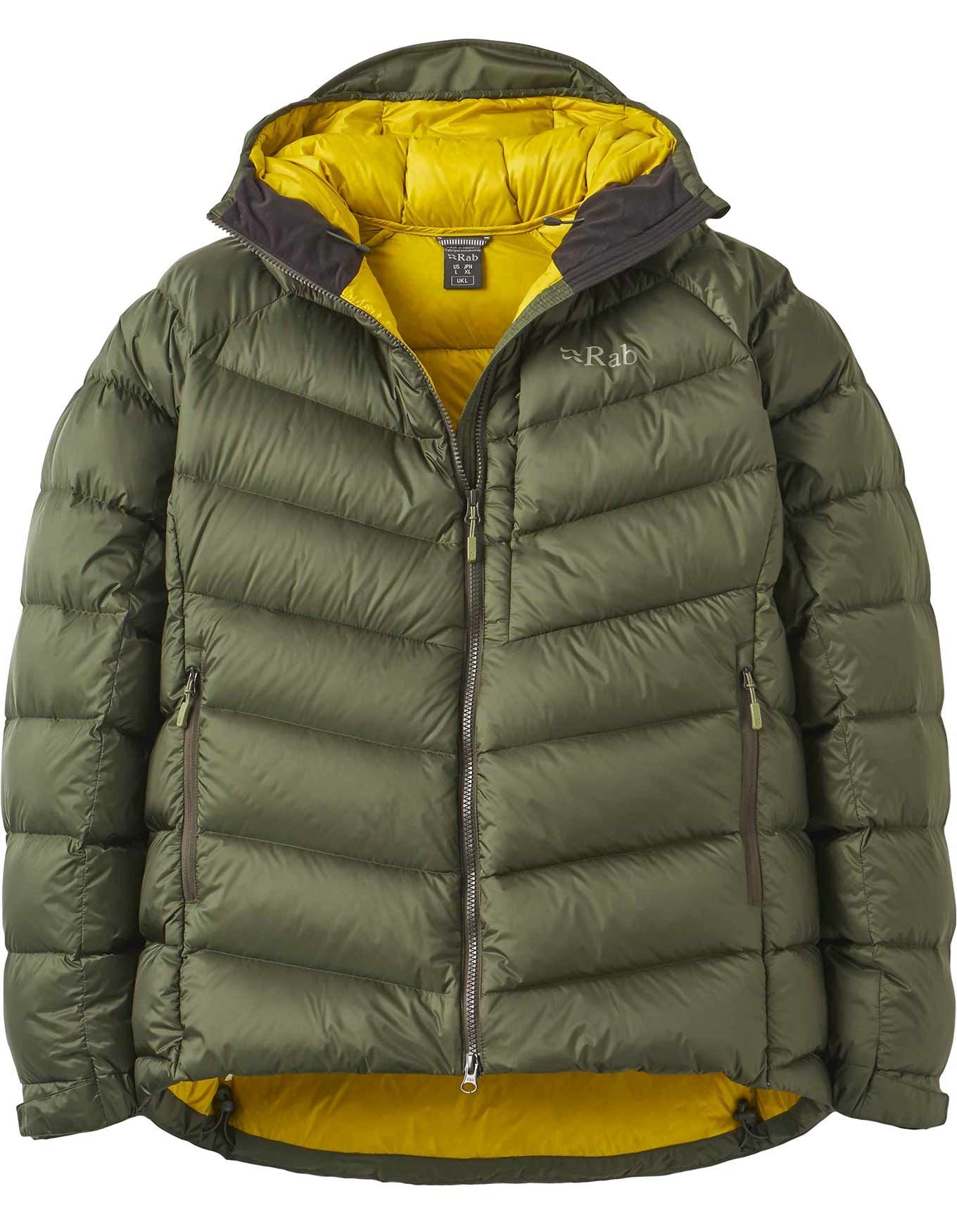 Doudoune Rab Glaceon Pro Jacket Army homme en Pertex® Quantum Pro avec duvet 700CUIN recyclé, capuche casque-compatible, traitement déperlant et poches sécurisées pour l’alpinisme hivernal.
