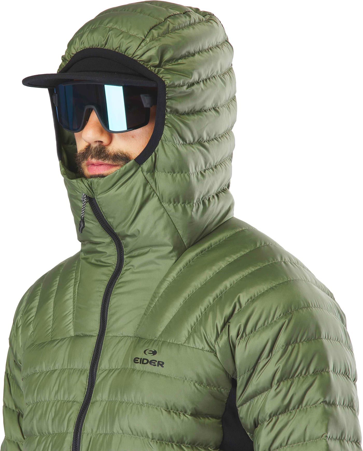 Doudoune technique EIDER Buet Micro Down Hood Jkt homme, conçue pour le ski de randonnée : isolation duvet/plume, tissu Pertex® Quantum ultraléger compressible, traitement DWR et lycra sous les bras pour respirabilité et liberté de mouvement.