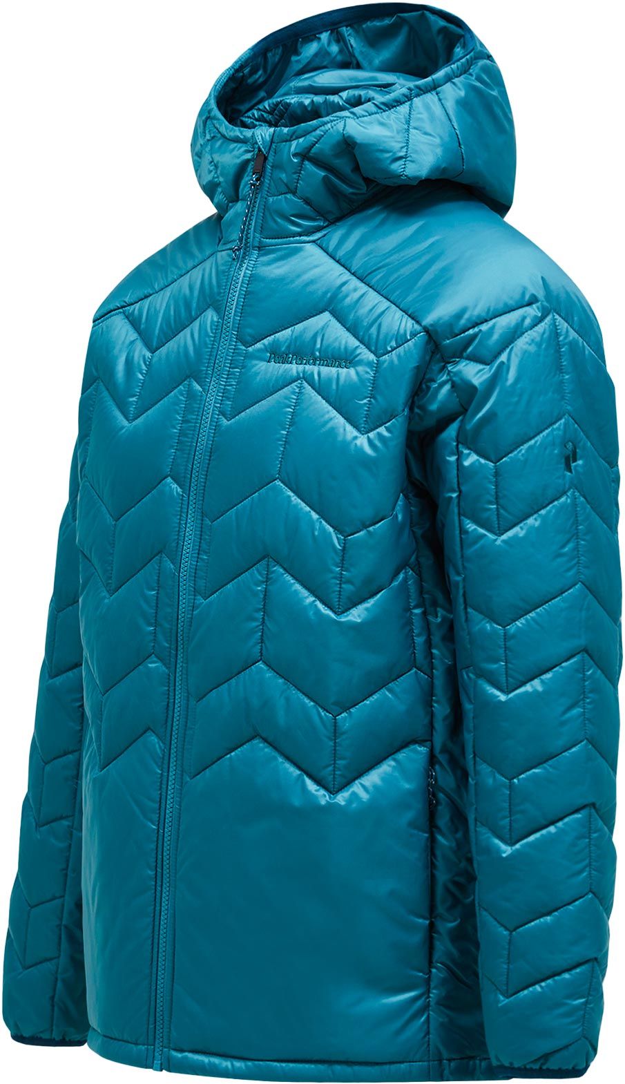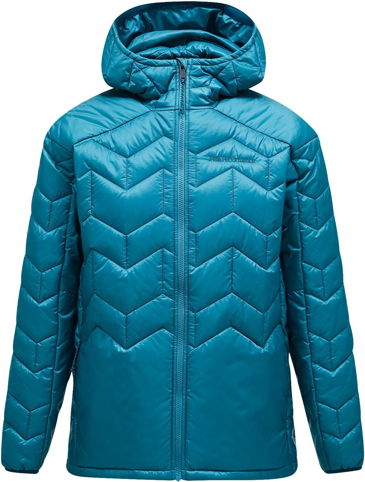 Peak Performance Elevate Liner Hood Hydro Fresh, doudoune technique homme hiver : isolation recyclée intégrée sans coutures, coupe-vent, déperlante, manches légères et zones isolées dos/poitrine pour mobilité et chaleur ciblées.