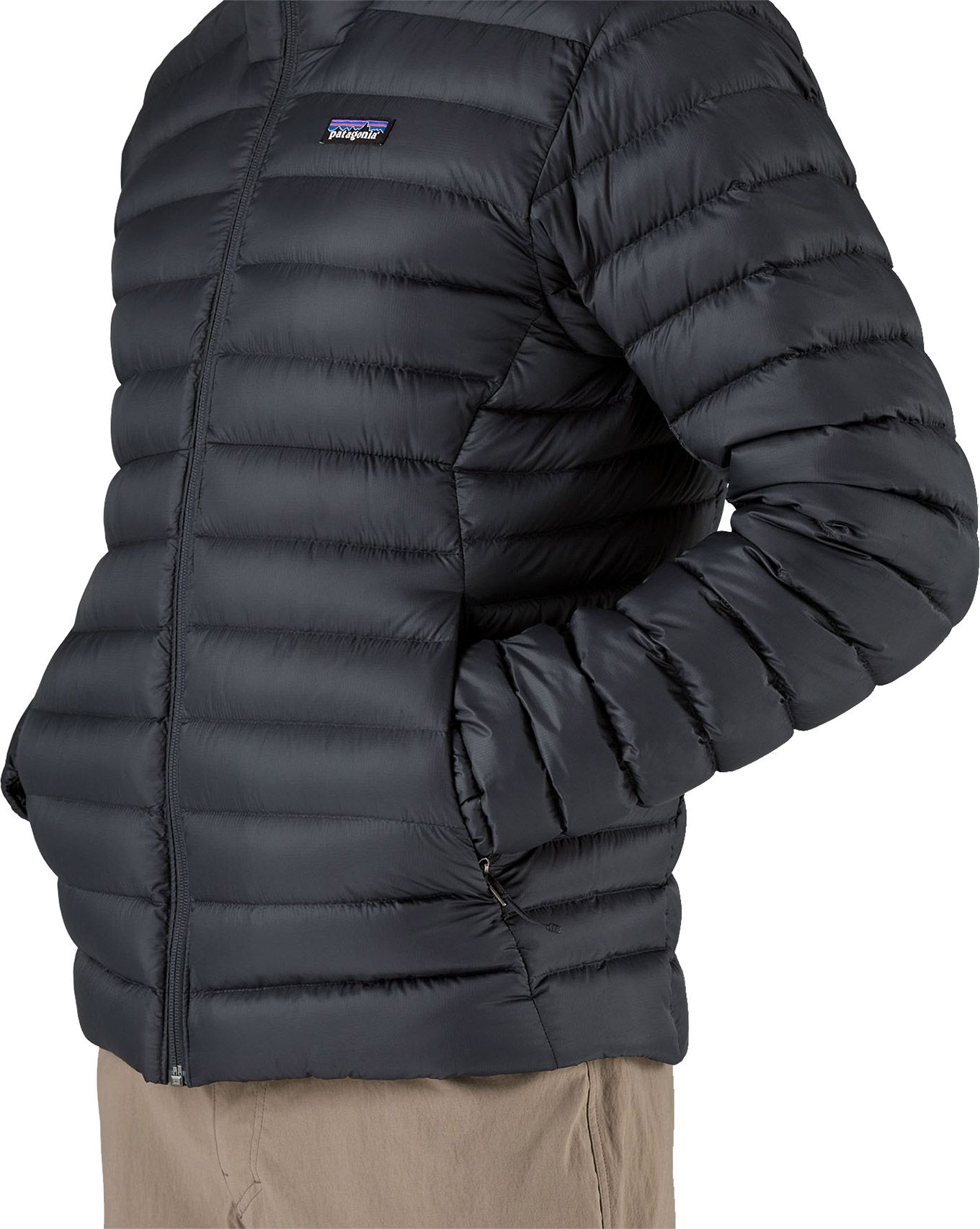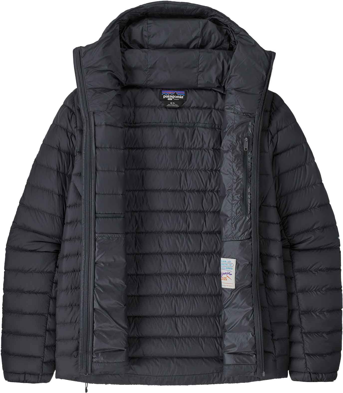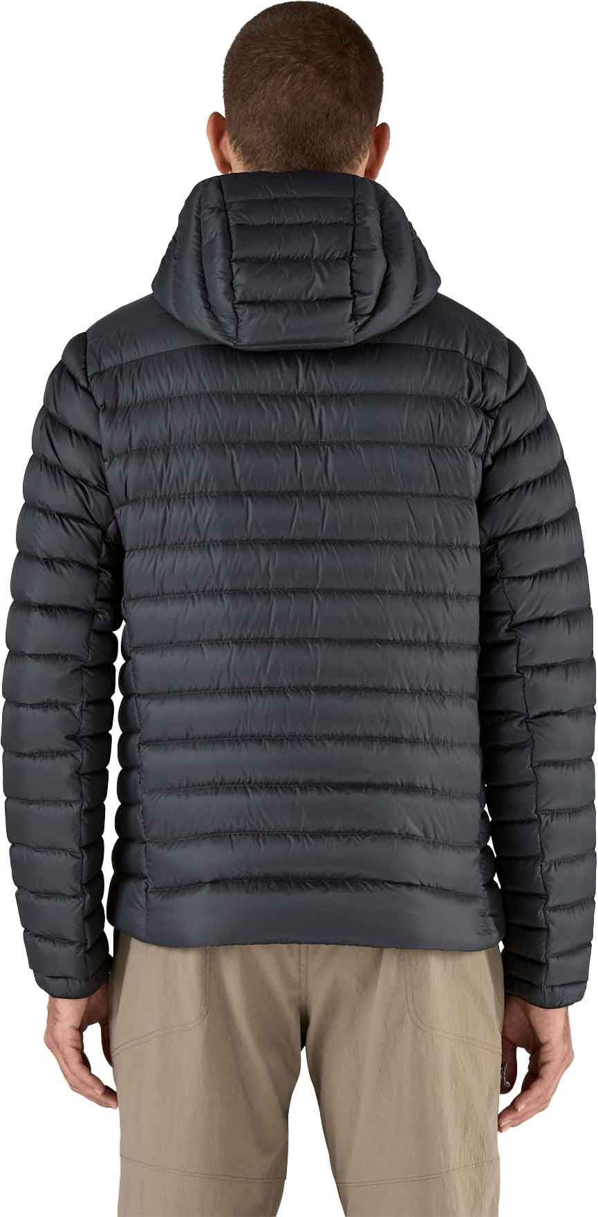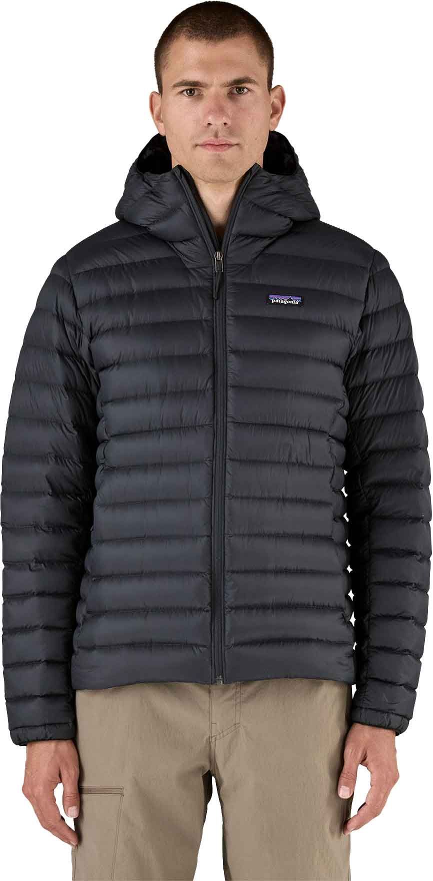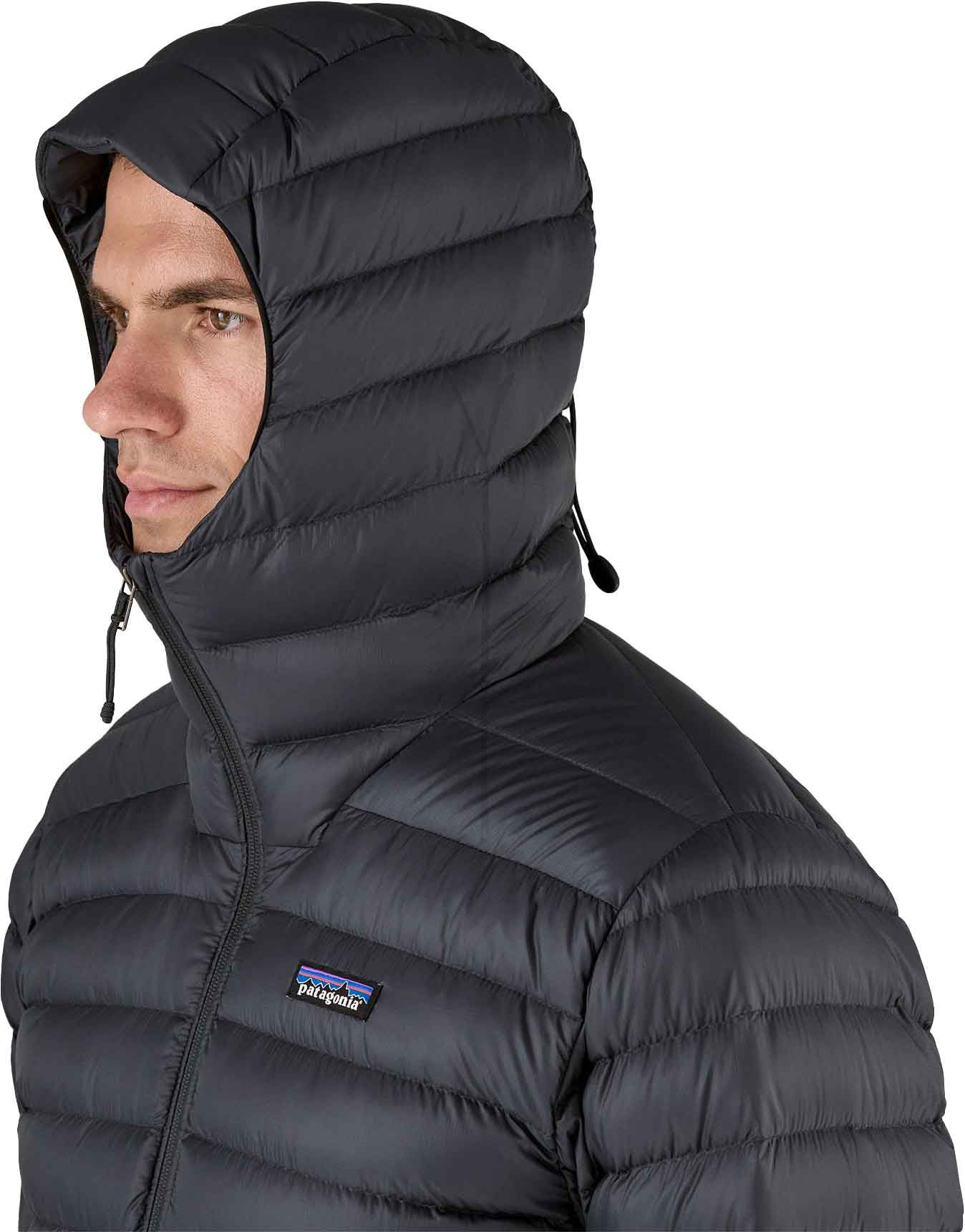 La doudoune Patagonia Down Sweater Hoody Black pour homme combine matière extérieure recyclée indéchirable et duvet 800 CUIN pour une chaleur légère et compressible en ville ou en montagne.