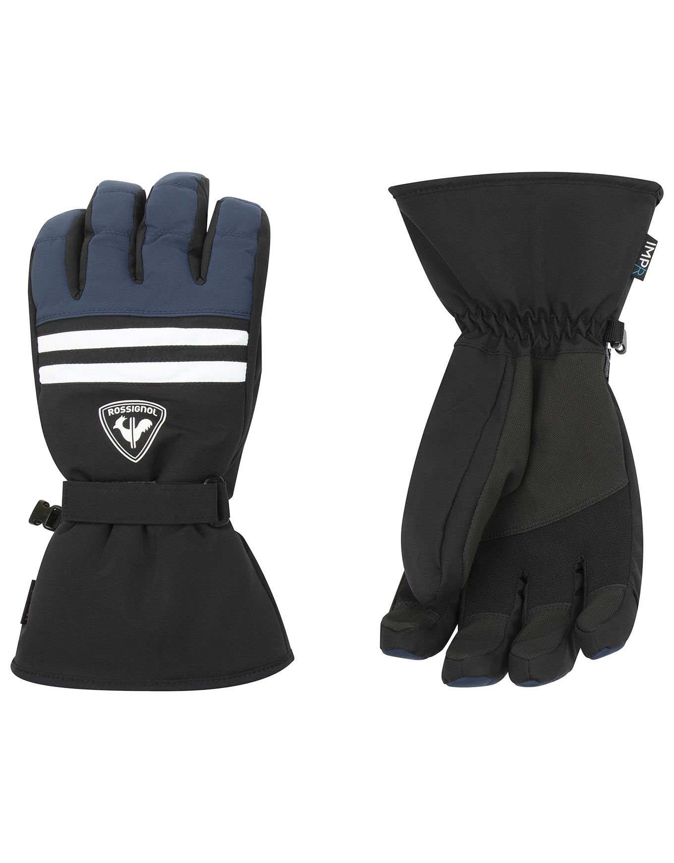 Gants de ski Rossignol Action Impr Dark Navy homme, membrane imper-résistante respirante, isolation légère, doigts préformés et paume extensible pour confort, chaleur et prise fiable.