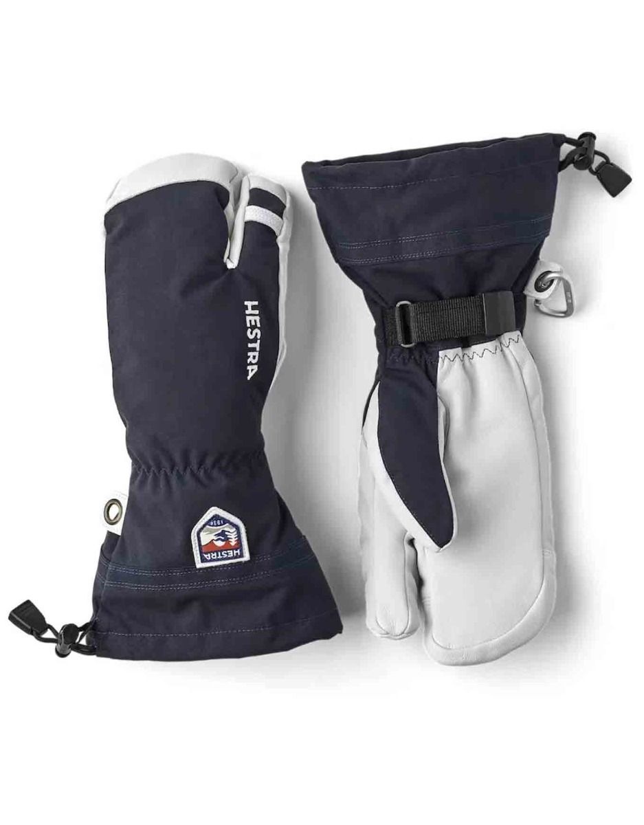 Gants de ski 3 doigts Army Leather Heli Ski Navy Hestra, cuir résistant, doublure Bemberg et isolation G-Loft pour chaleur et sécheresse durables en conditions extrêmes.