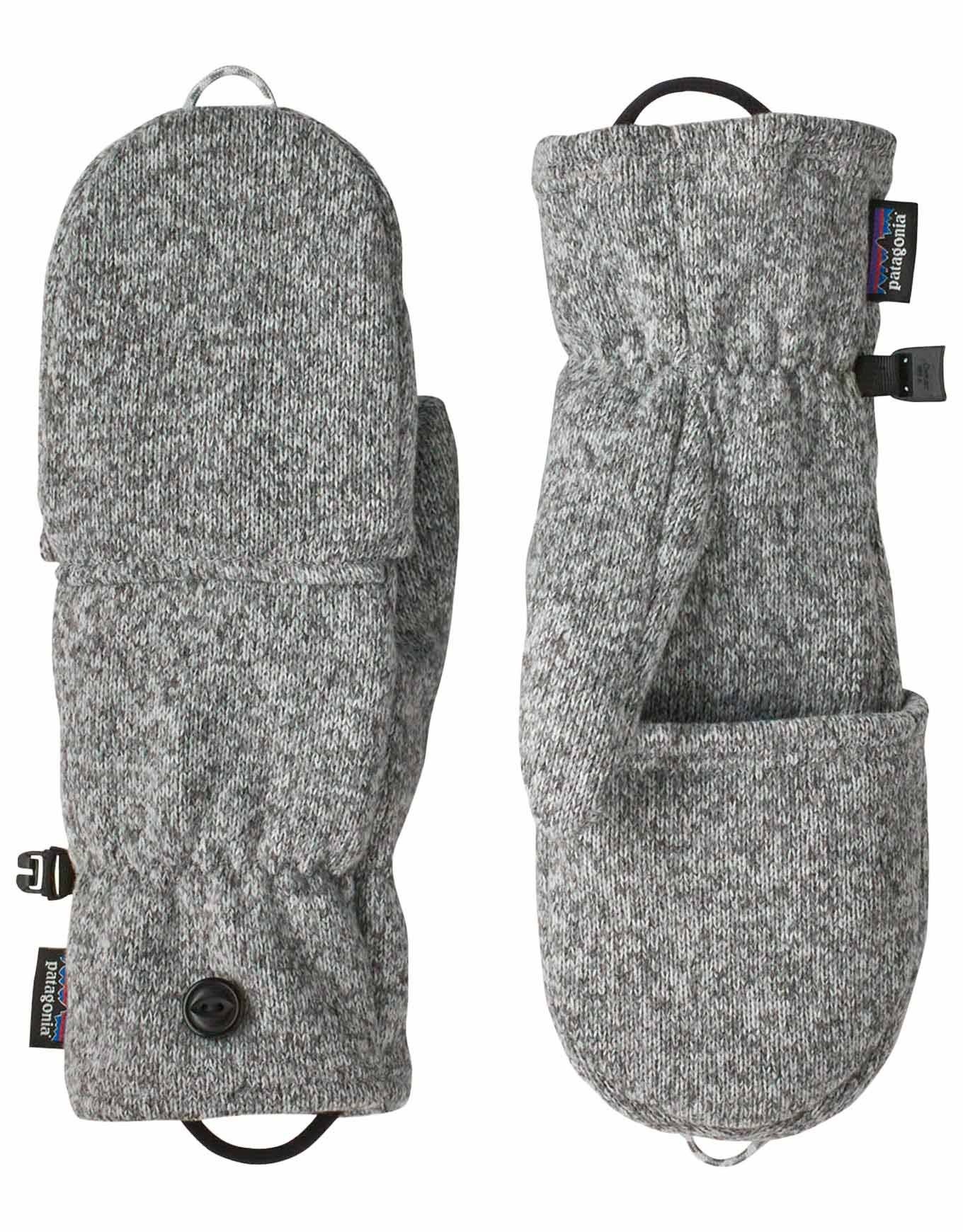 Gants convertibles Patagonia Better Sweater Gloves Birch White en polaire recyclée, chauds et confortables, avec doigt amovible fixable par bouton et poignets élastiques anti-froid.