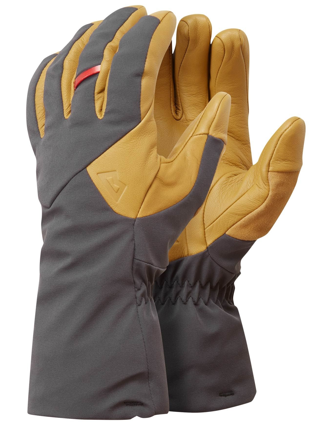 Gant technique Mountain Equipment Couloir Glove Obsidian/Tan pour l’alpinisme et le ski en conditions rigoureuses : membrane GORE-TEX ePE imper-respirante, softshell EXOLITE XP extensible, paume cuir de chèvre renforcée, doublure polaire confort et adhérence fiable sur piolets.
