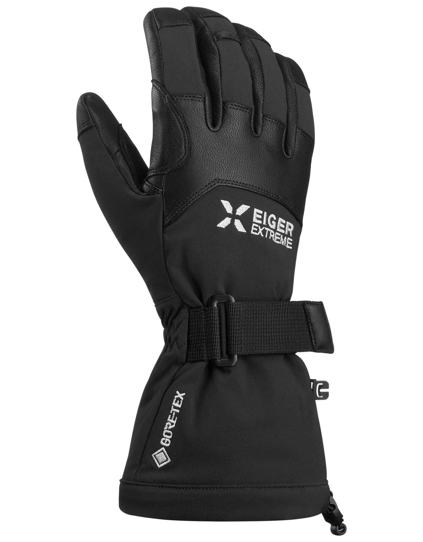 Gants Eiger Nordwand Pro 2 in 1 Black Mammut : système dual grip/chaleur, cuir de chèvre, Gore-Tex ePE, PrimaLoft Gold, poignet long ajustable pour alpinisme et ski extrême.