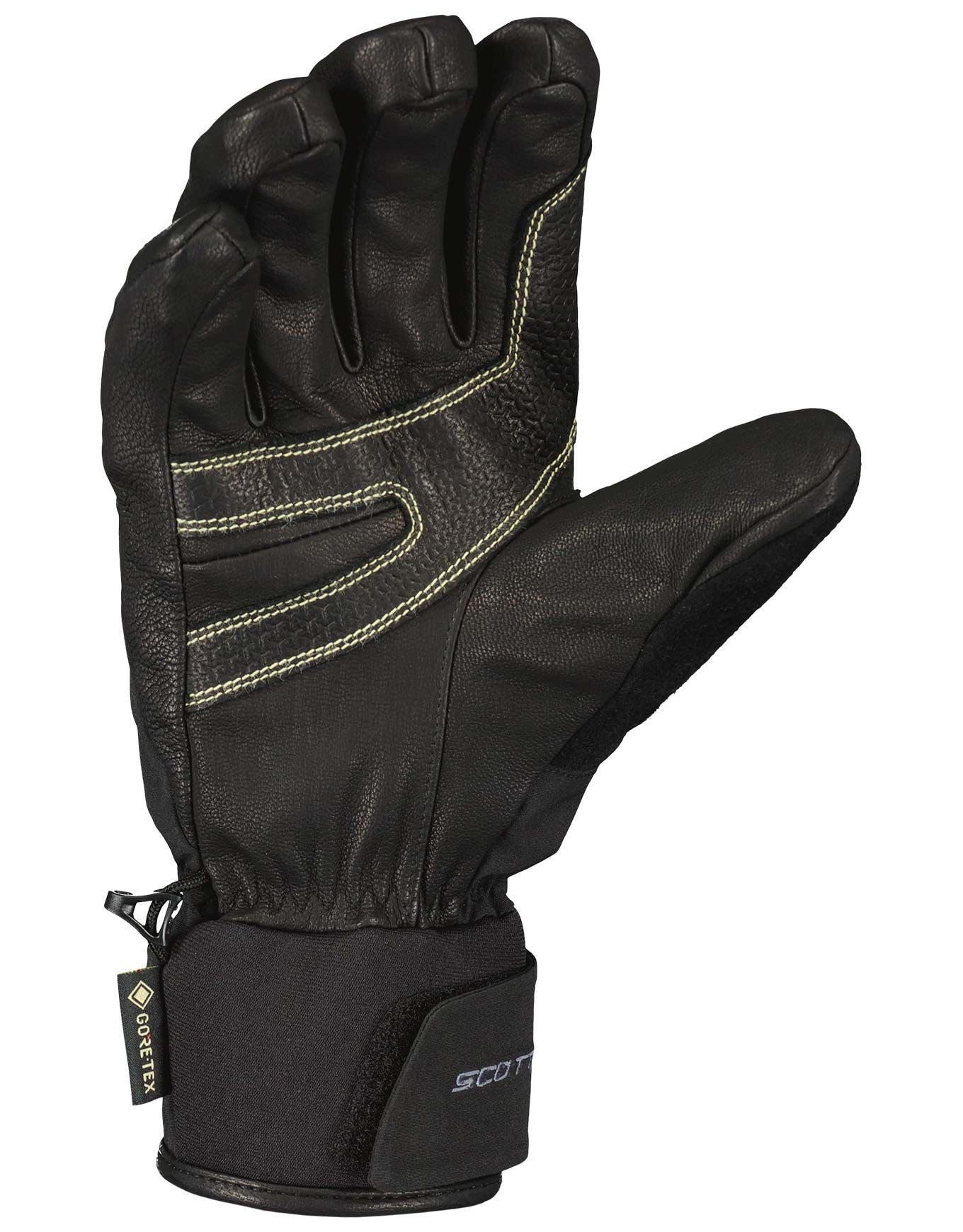 Gants de ski Scott Explorair Pro GTX Black unisexe, membrane GORE-TEX imperméable-respirante, paume cuir de chèvre renforcée Kevlar, isolation DUROloft et doublure Sherpa pour chaleur et confort durant la journée.