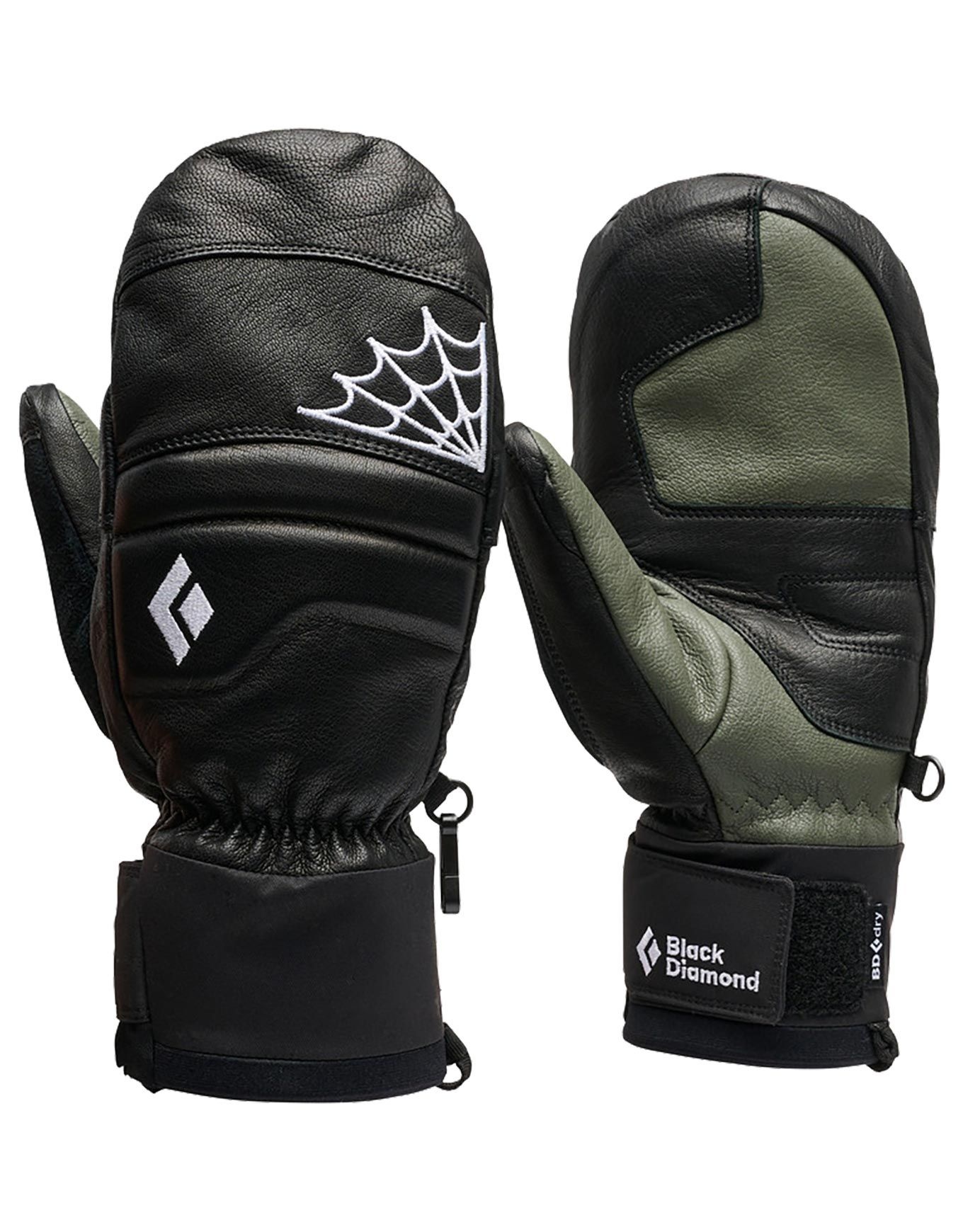 Moufles de freeride Black Diamond Max Palm Spark Mitts Black Tundra en cuir de chèvre ultrarésistant, membrane BD.dry imperméable, isolation PrimaLoft Gold, doublure polaire et doigts séparés pour chaleur et dextérité en poudreuse.