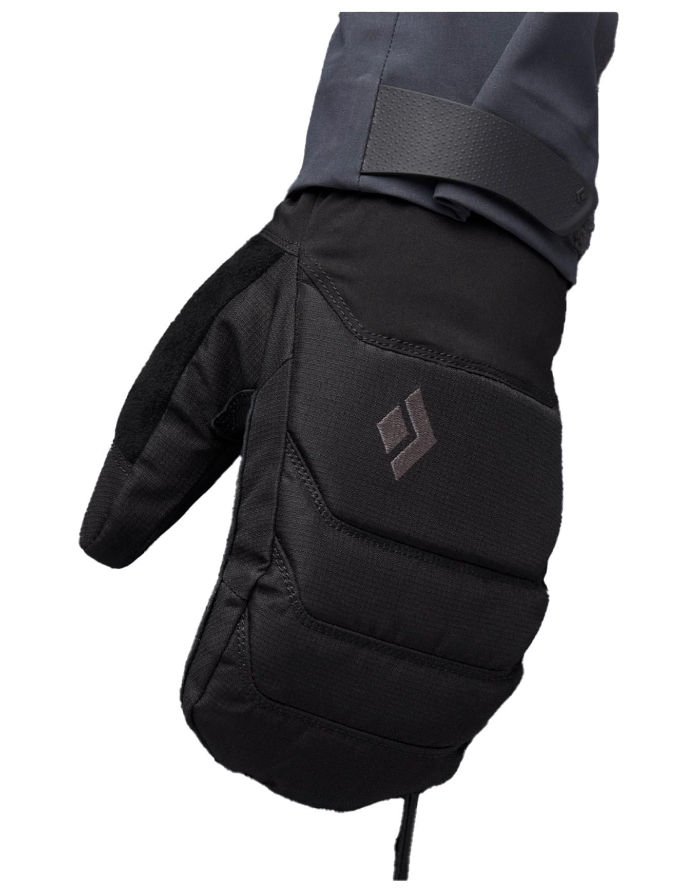 Les moufles techniques Black Diamond Mission MX Mitts Black combinent membrane GORE-TEX, isolation PrimaLoft® Gold et cuir de chèvre pour imperméabilité, chaleur et dextérité en freeride.