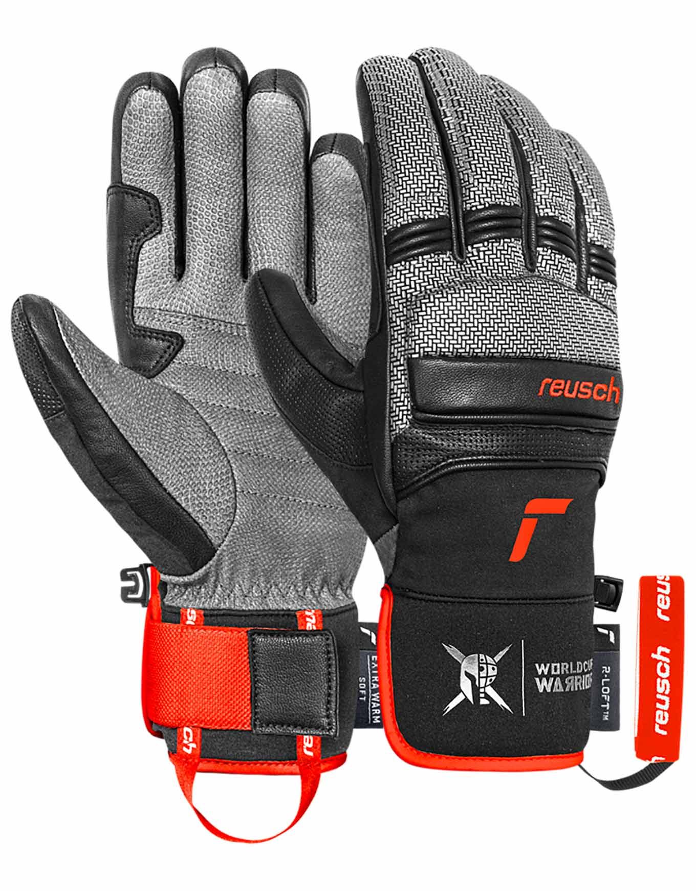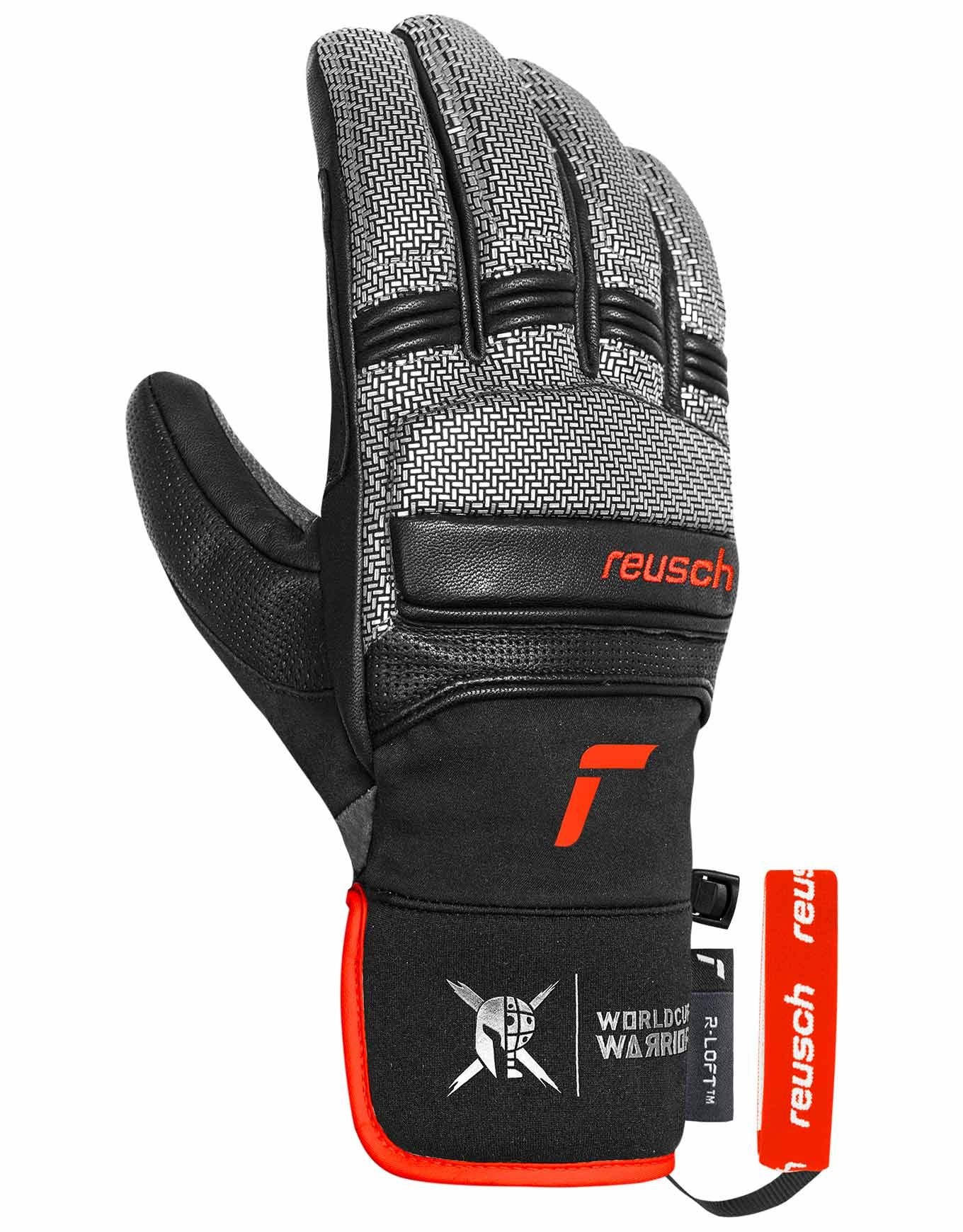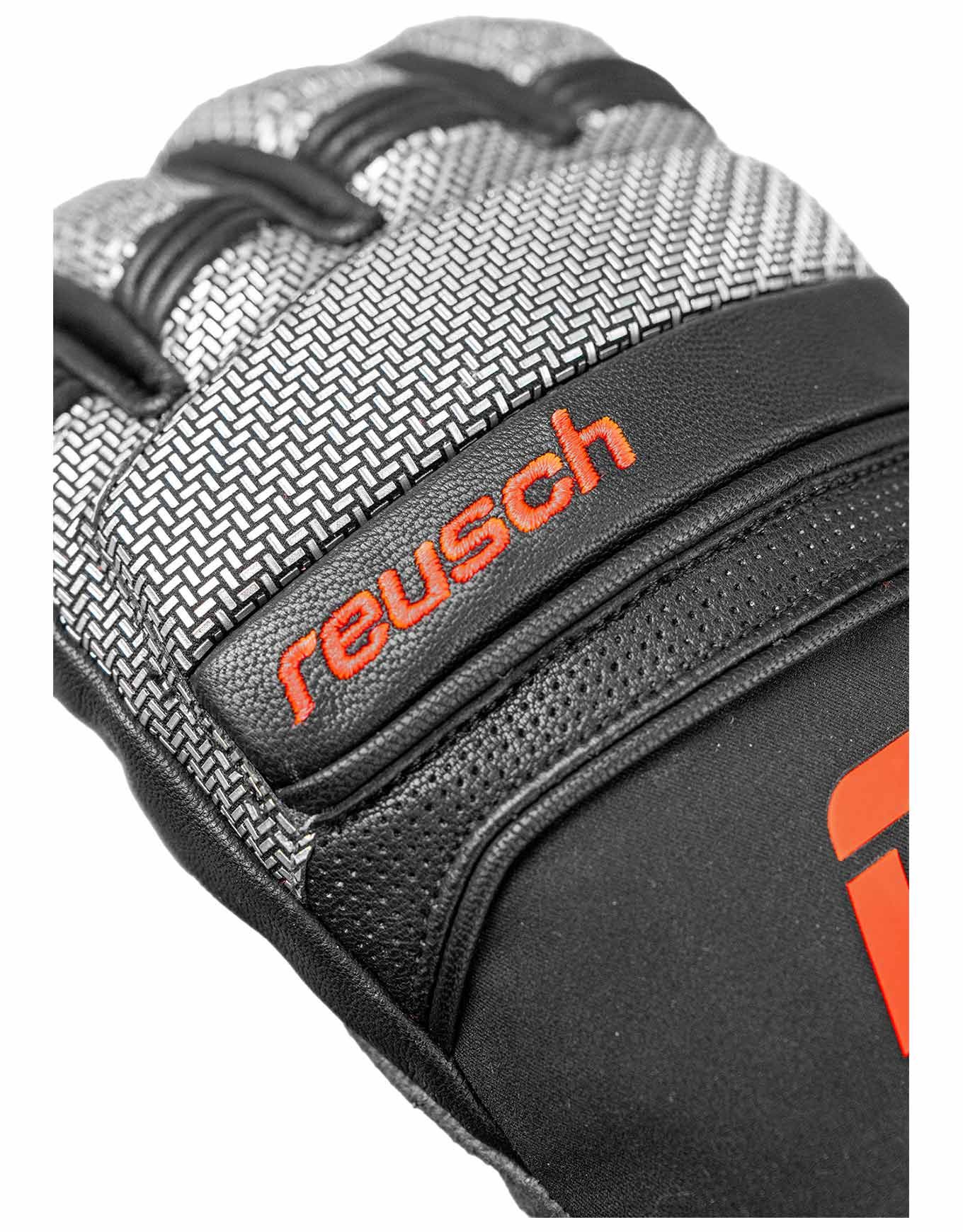 Gants de ski Reusch Alpine Master Black/Silver/Fluo Red unisexe alliant cuir de chèvre à la paume, isolation R-LOFT™ et renforts céramique pour protection, adhérence et chaleur en conditions alpines exigeantes.