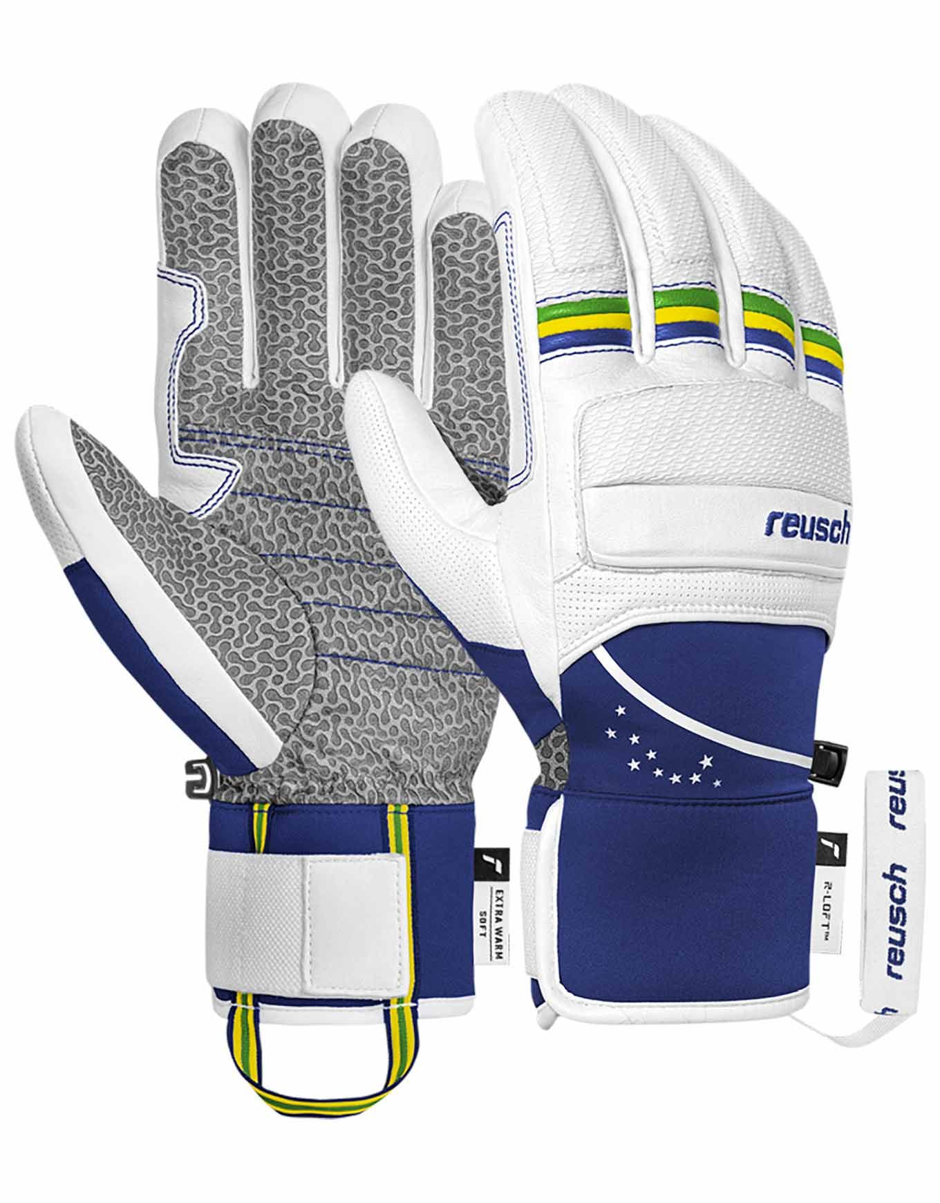 Gants de ski Reusch Lucas Braathen White/Surf The Web, design Lucas Braathen, cuir de chèvre huilé, isolation R-LOFT™, protection céramique, doublure MicroActive, chauds et précis.