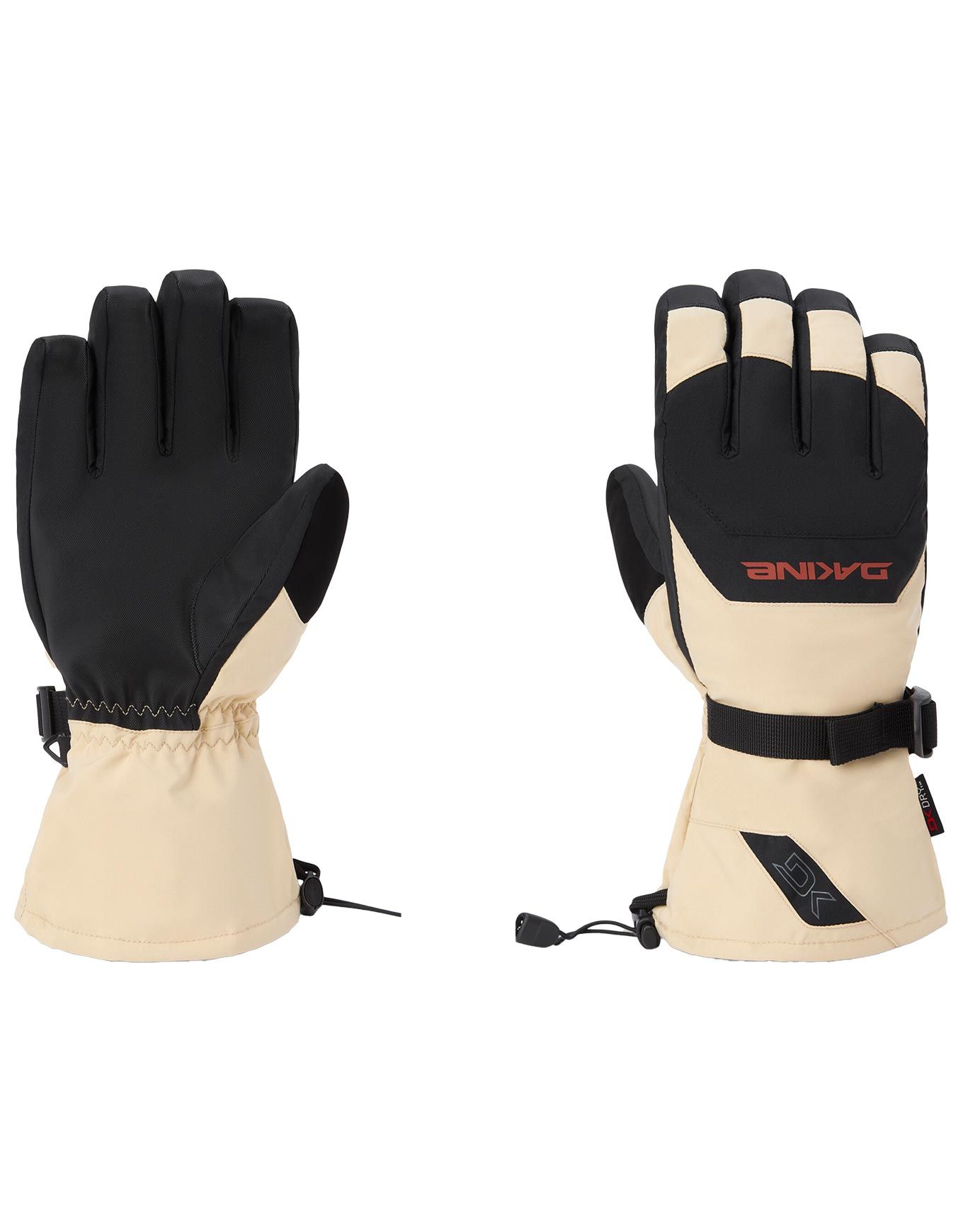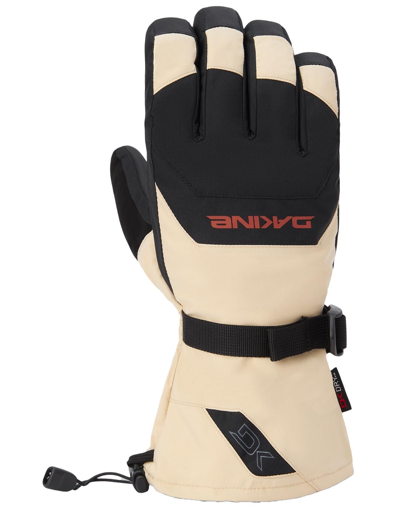 Gants de ski homme Dakine Scout Glove Brown Rice, membrane DK Dry™ imperméable, paume Rubbertec, isolant haute densité, doublure polaire amovible compatible écran tactile.