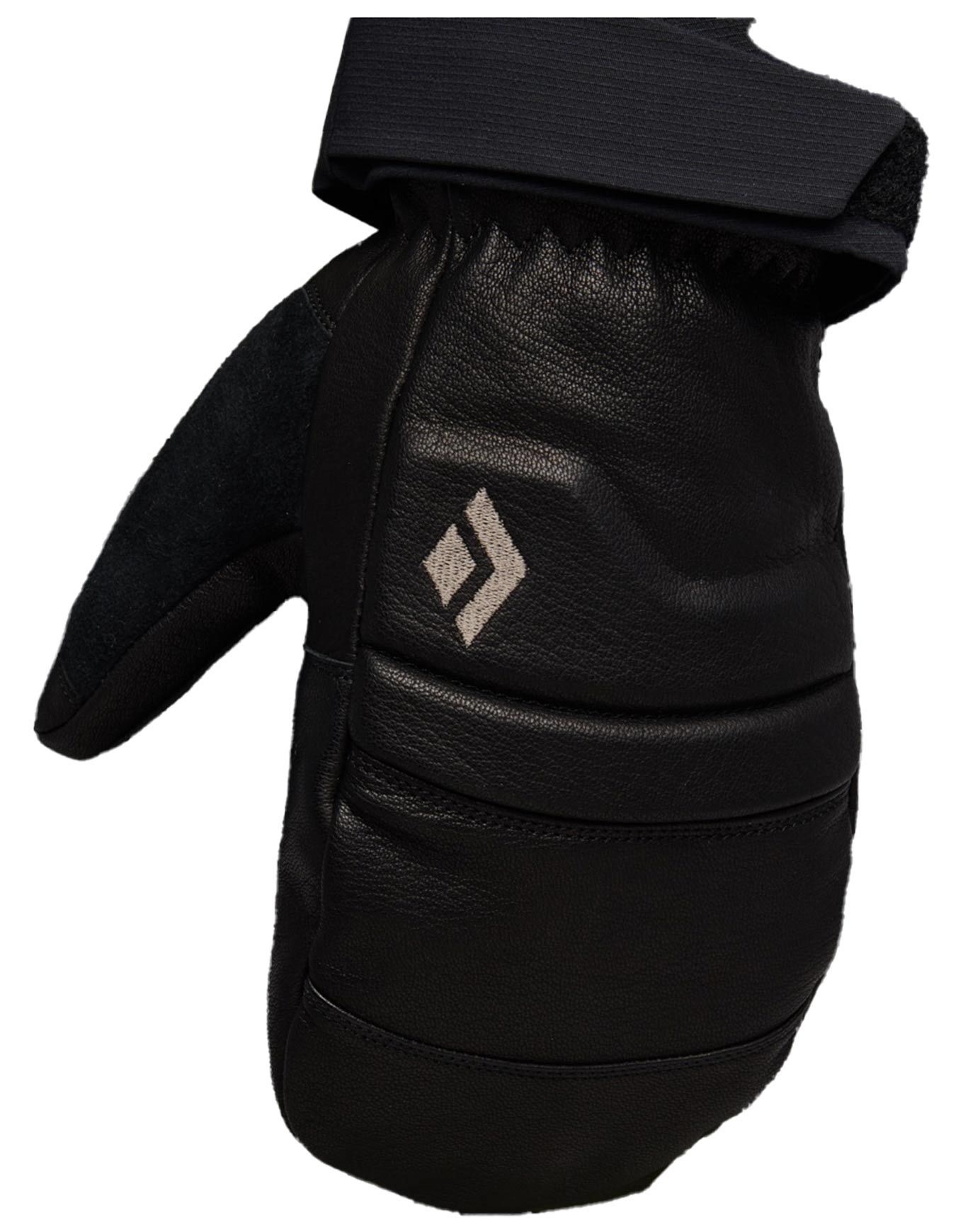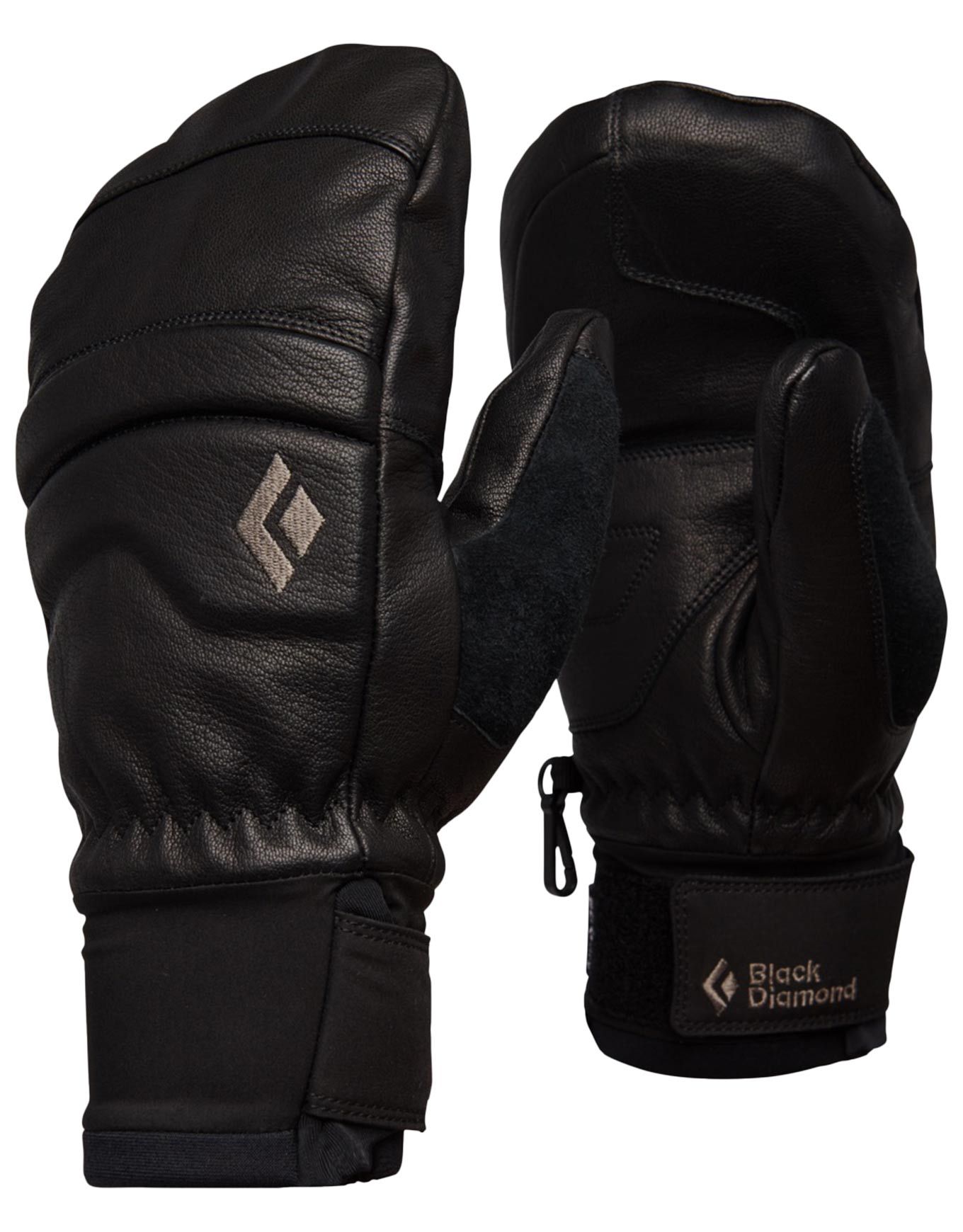 Moufles de freeride Black Diamond Spark Mitts Black Black, membrane BD.dry™, isolation PrimaLoft® Gold, cuir de chèvre résistant et Freeride Cuff pour une protection complète contre la neige.