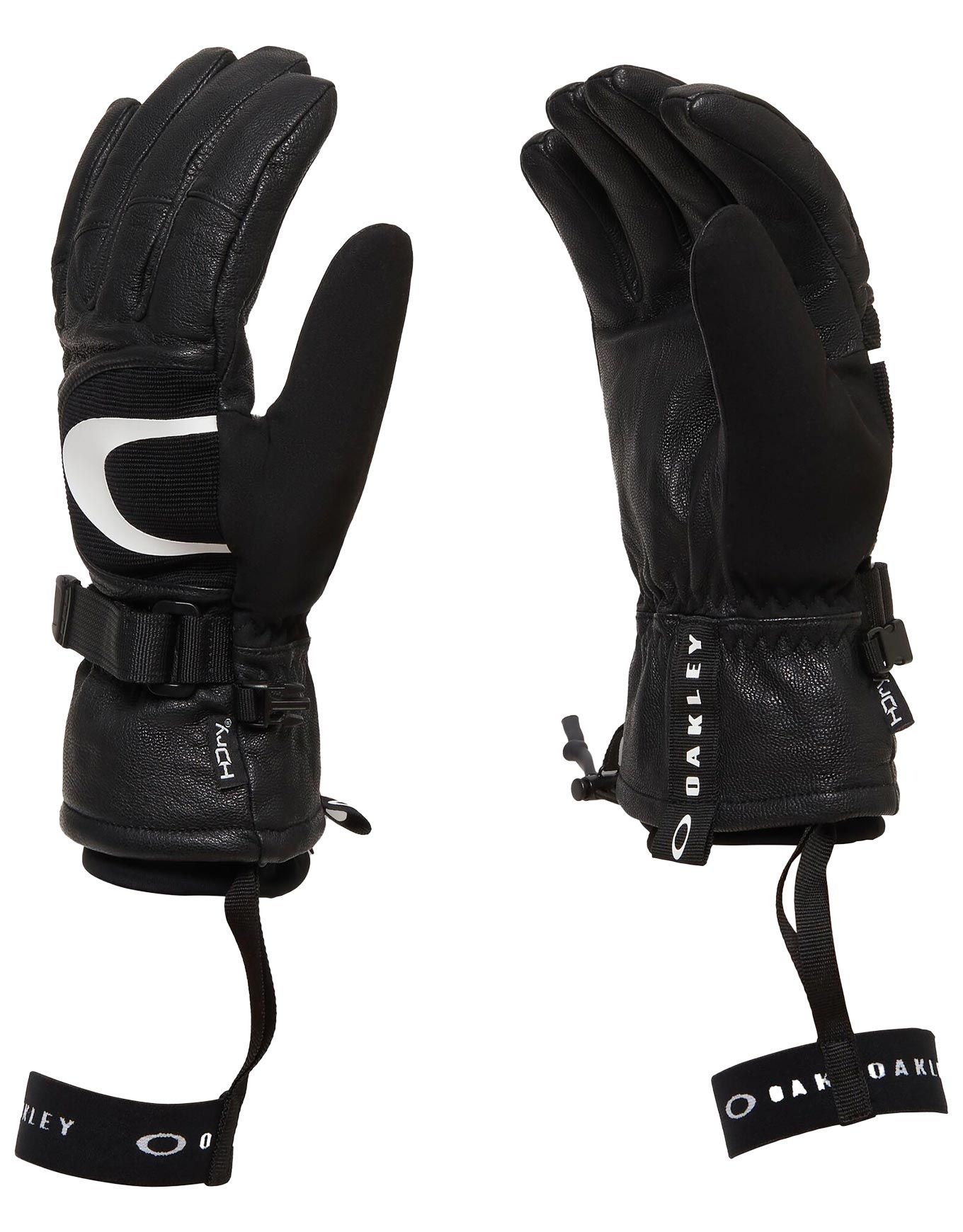 Gants Oakley Timberline Blackout en cuir de chèvre et fibres synthétiques, membrane HDry® étanche-respirante, isolation 3M Thinsulate™, poignet anti-neige et dragonne élastique pour le ski.