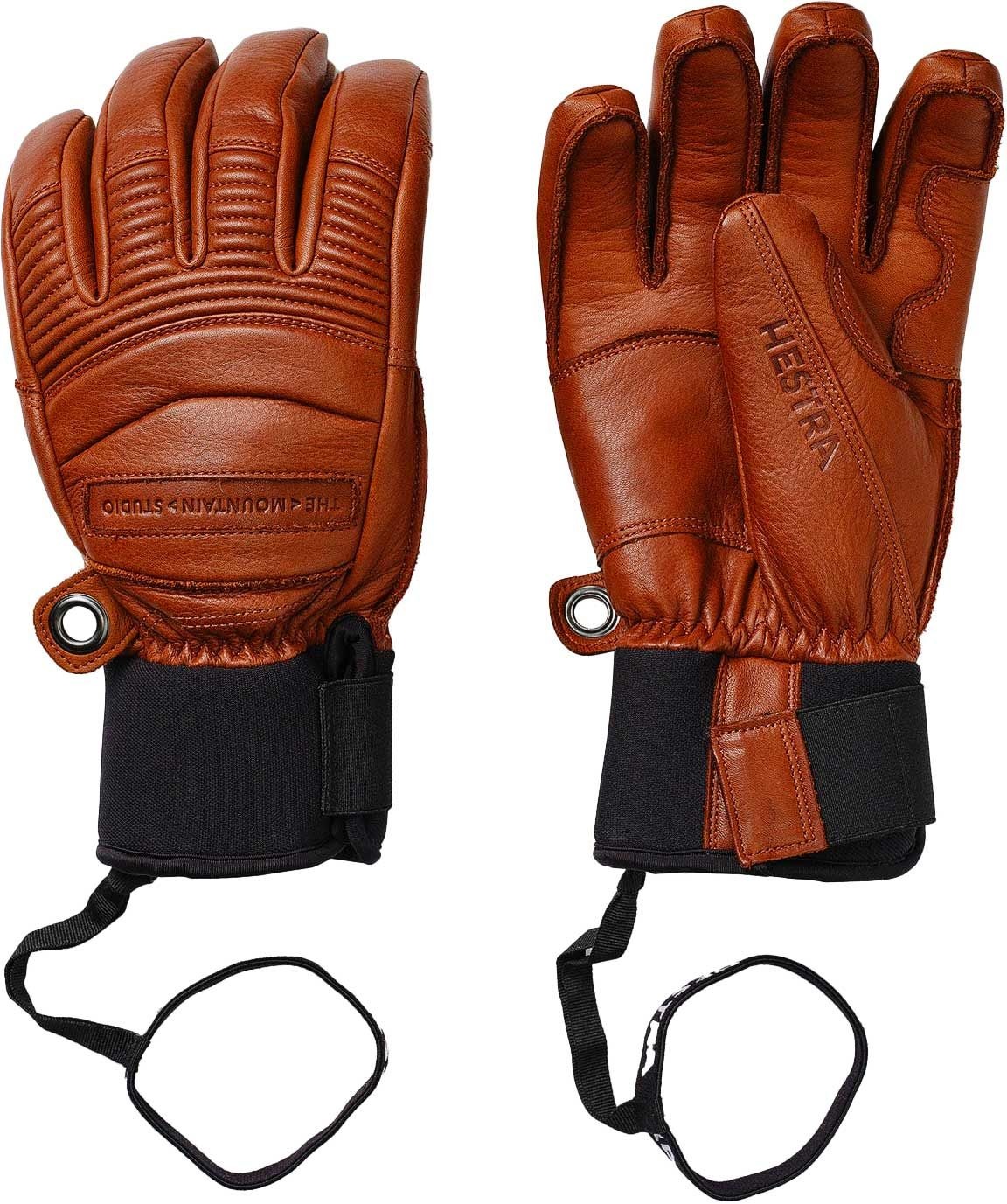The Mountain Studio Tms & Hestra® Leather Glove Delicioso Brown : gants techniques freeride en cuir de vache, manchettes néoprène, doublure Bemberg chaude respirante, coutures extérieures pour une prise de bâton précise.