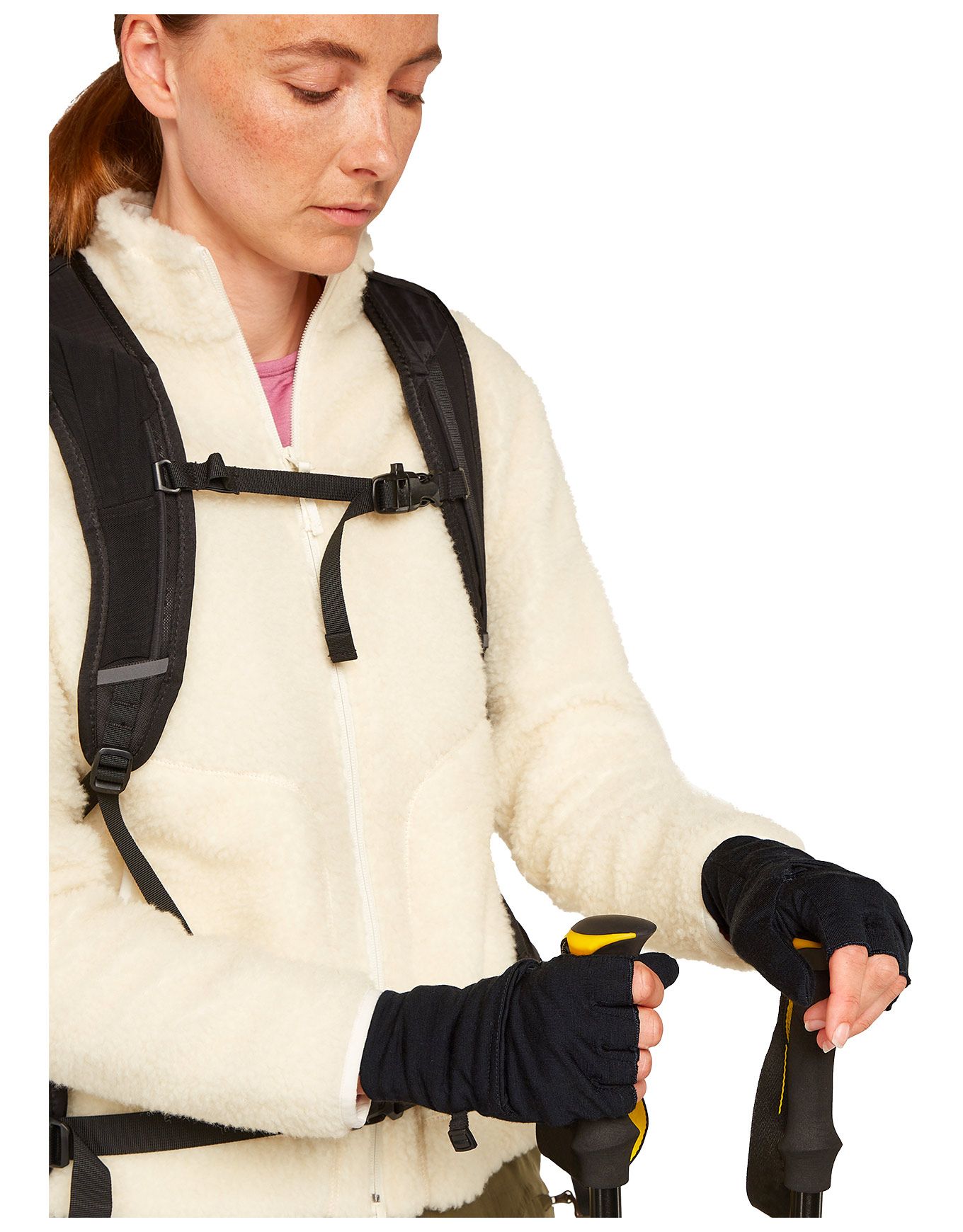 - Rabat à l’extrémité des doigts, permettant de transformer les gants en mitaines