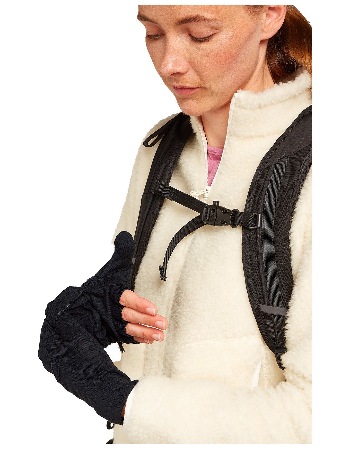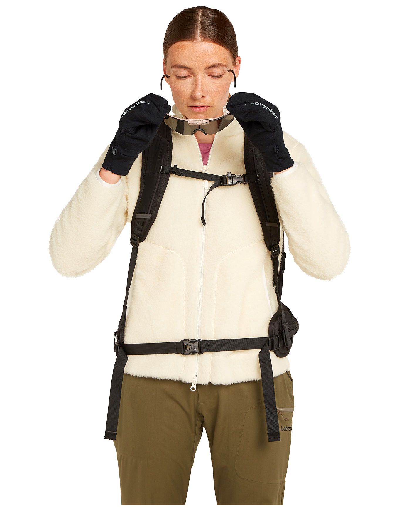 Le confort et l’ajustement sont garantis par un surjet extensible positionné au bout des doigts, la finition au niveau du poignet bénéficie d’une étiquette repliée soignée, et une boucle en plastique offre la possibilité de maintenir les gants assemblés lorsqu’ils ne sont pas portés.