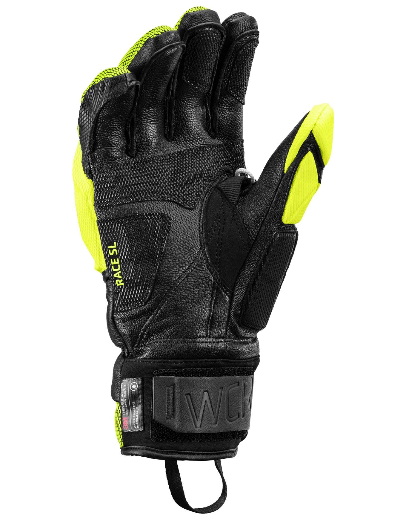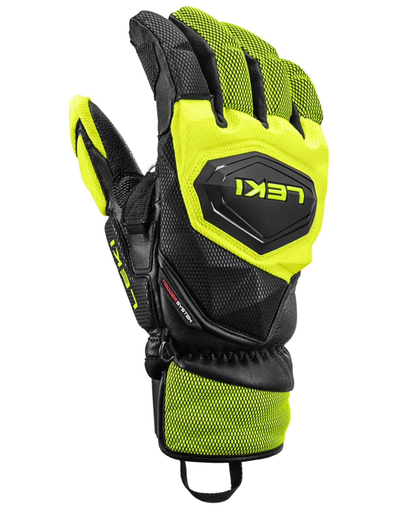 Gants de slalom Leki WCR Venom SL 3D Black-Ice Lemon unisexes, combinant isolation Thinsulate™ et Hyperloft, déperlance, coque céramique et système Trigger pour sécurité et performance.