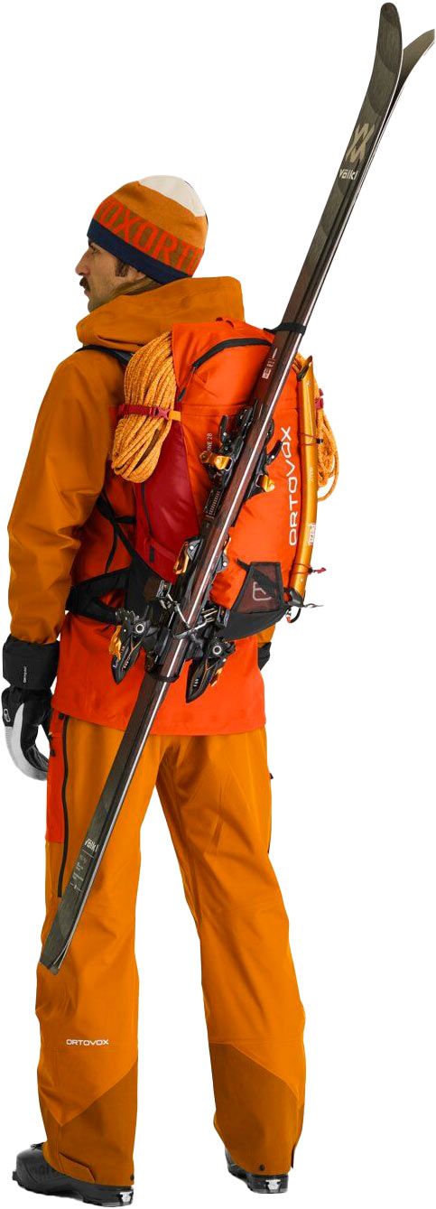 Du point de vue fonctionnel, une ceinture ajustable, des ouvertures de ventilation pour un rafraîchissement immédiat et des guêtres intégrées pour une protection maximale équipent ce modèle. Des poches sécurisées sont également présentes, dont l’une accueille votre DVA. Pour finir, liberté de mouvement optimale est offerte par une coupe ample combinée à des genoux articulés.