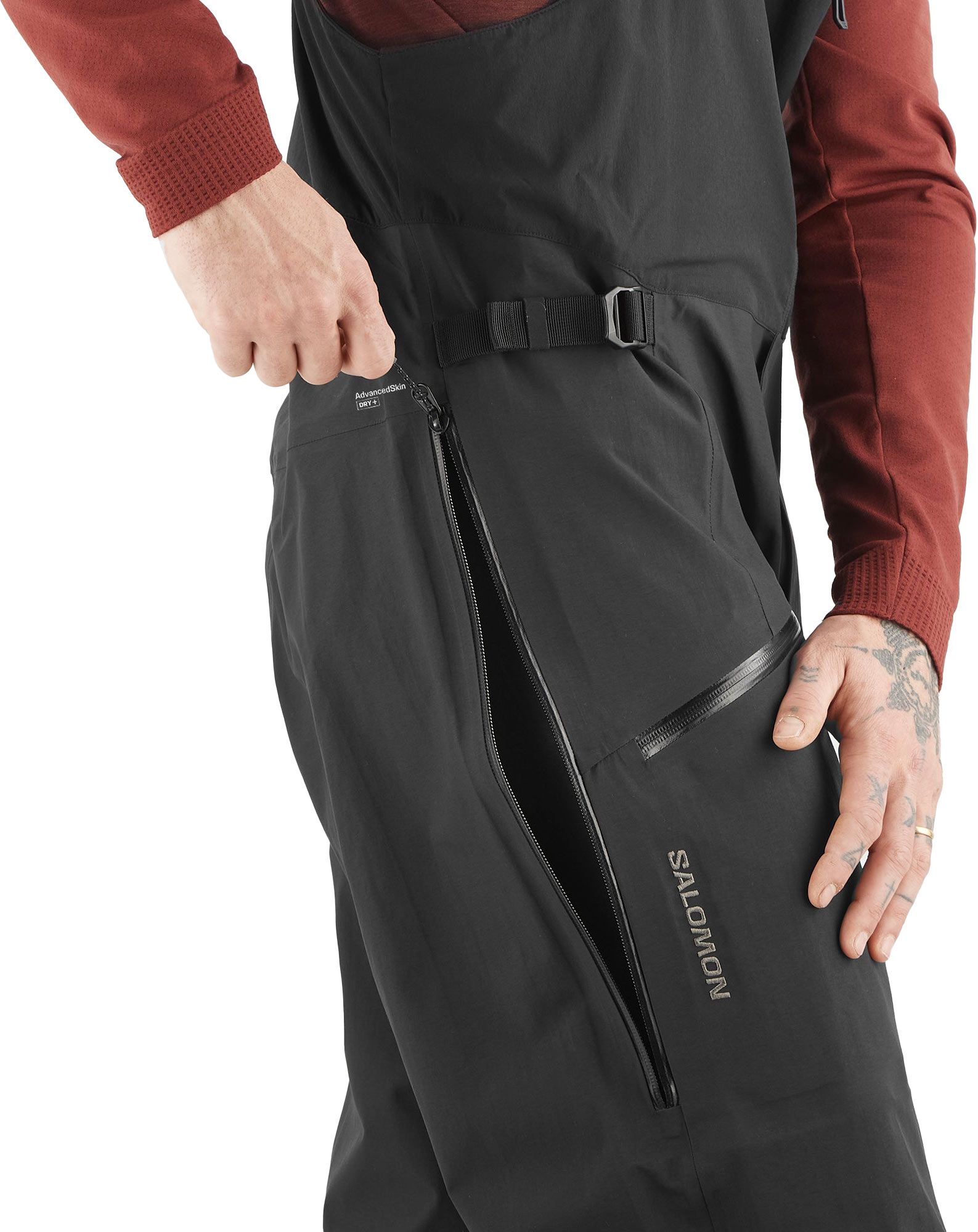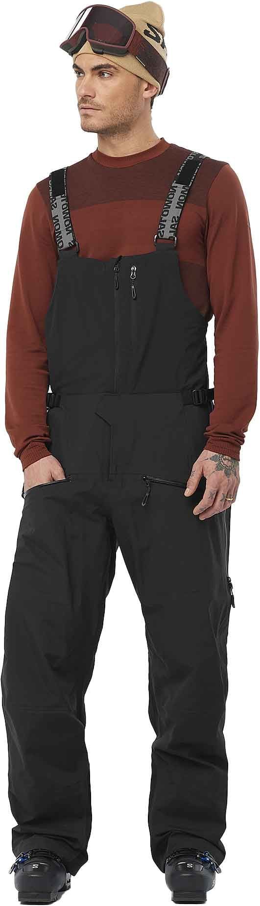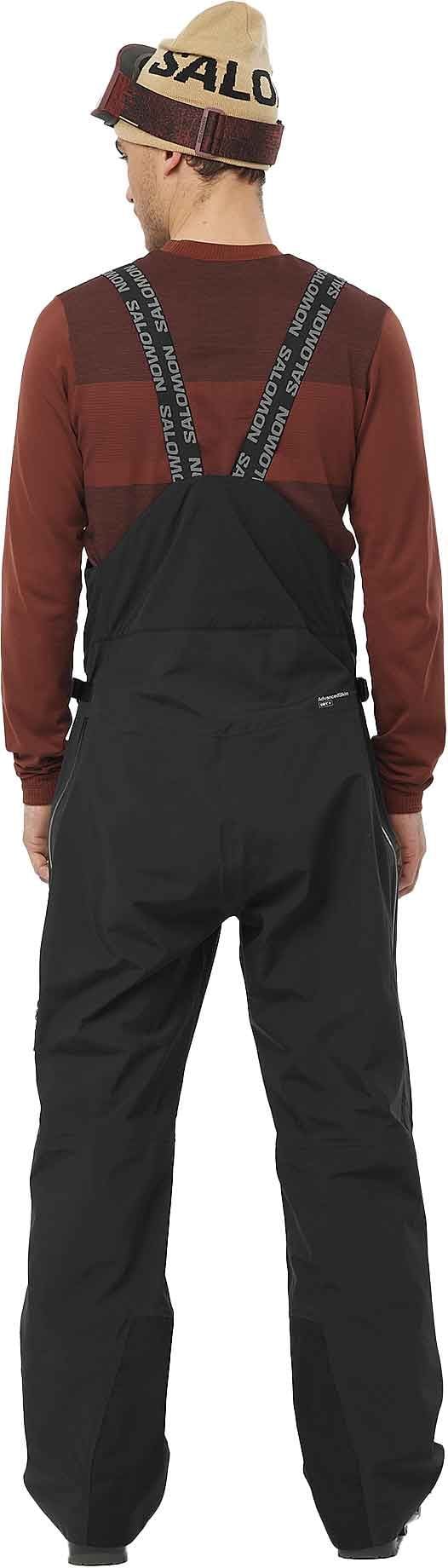 Salopette de ski Salomon Absolute Bib Deep Black homme, imperméable et respirante avec membrane 3 couches, isolation thermique, technologie AdvancedSkin Dry+ et construction Motion Fit pour liberté de mouvement.