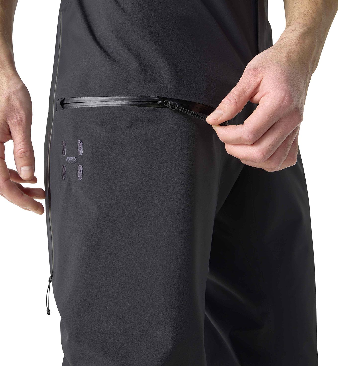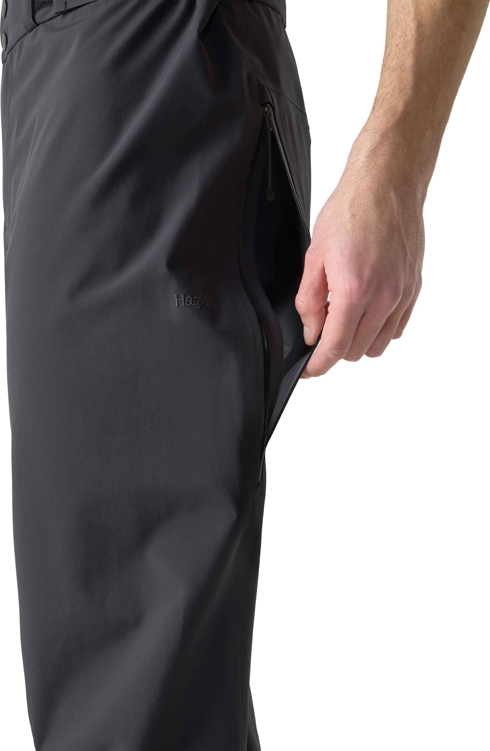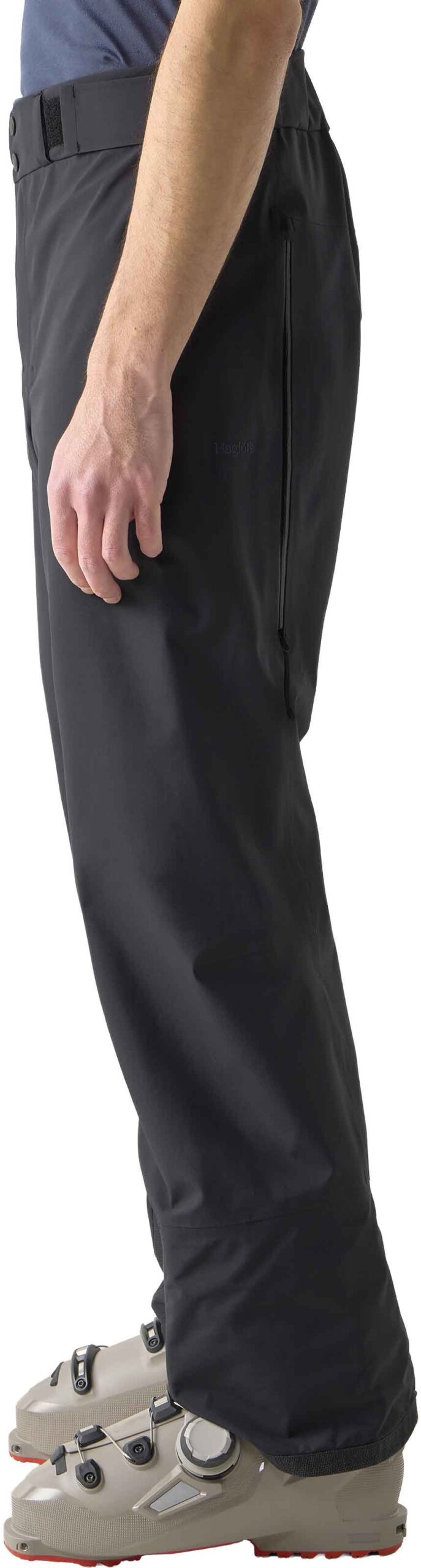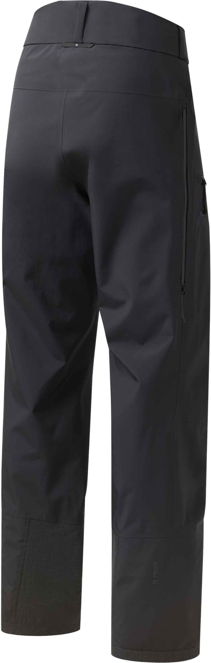 Pantalon ski homme Haglöfs Alper Proof Pant True Black, 3 couches membrane PROOF™ Pro imperméable-respirante, polyester recyclé sans PFAS, taille réglable, genoux articulés, ventilations cuisses, guêtres intégrées, renforts Kevlar.
