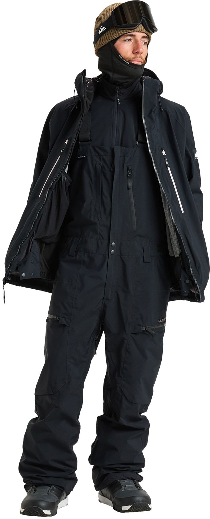 Salopette de snowboard Quiksilver Altostratus Stretch GORE-TEX® True Black homme : imperméable GORE-TEX, respirante, isolation WarmFlight® x1 légère, tissu extensible 52 % polyester recyclé, coutures étanchées et zips YKK résistants.
