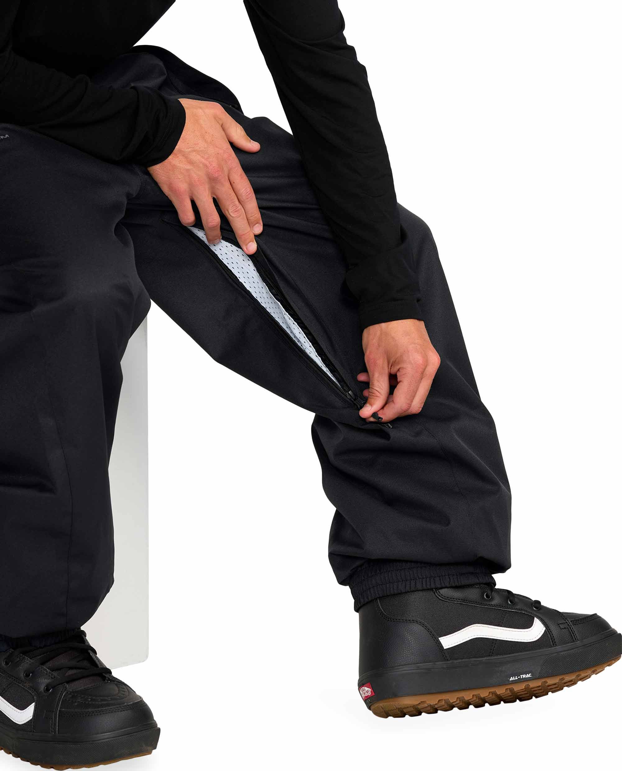 Pantalon de ski homme Volcom Arthur 20K Pant Black, coupe baggy, imperméable 20K, avec Zip Tech® pour attacher la veste, zips d’aération mesh et guêtres anti-neige.