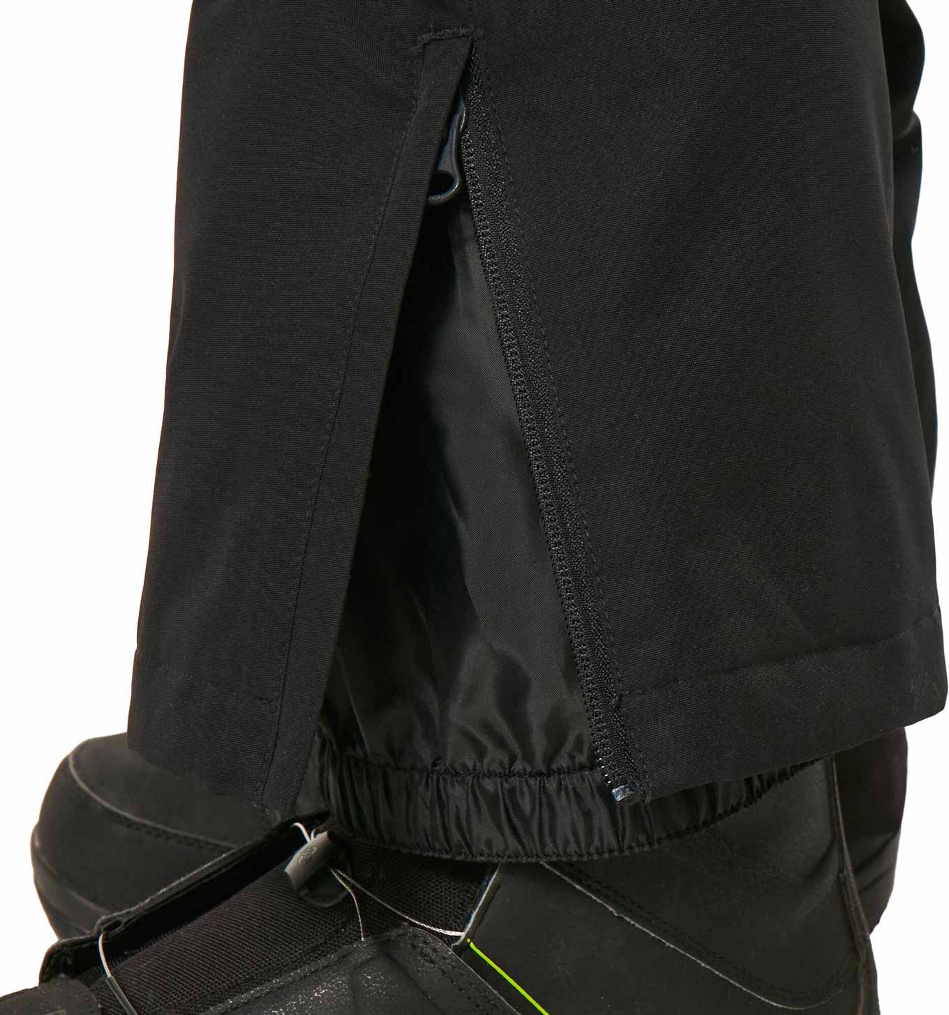 Un maintien personnalisé est assuré par la ceinture ajustable équipée de passants, d’une fermeture double bouton et d’un crochet. La chaleur est préservée et la neige tenue à l’écart grâce aux pattes Velcro® modulables au niveau de la taille, au soufflet cheville zippé avec rabat, ainsi qu’aux guêtres intérieures élastiquées munies d’un crochet métallique. Les revers bénéficient d’empiècements renforcés qui protègent du frottement des chaussures de ski, contribuant ainsi à allonger la durée de vie du pantalon.