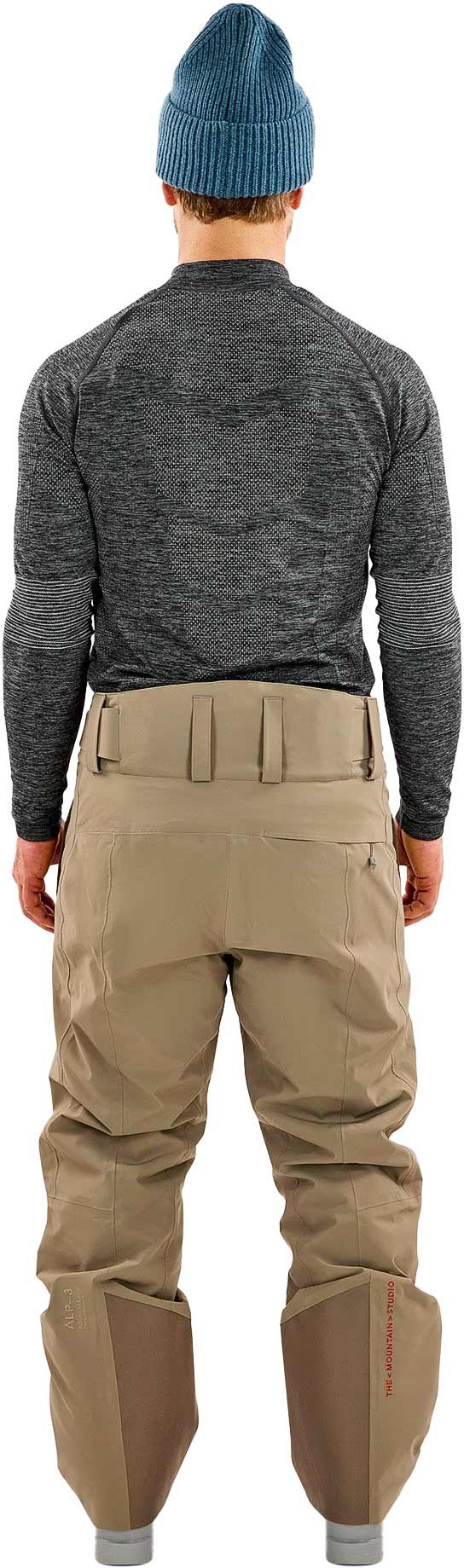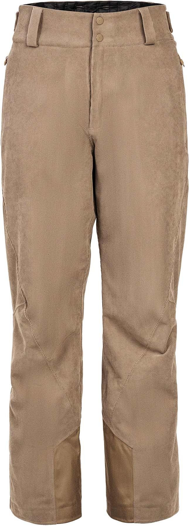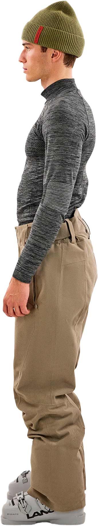 The Mountain Studio Carv Cord Insulated Stretch Pant Brindle pantalon ski homme allie membrane ALP-3 imperméable, isolation PrimaLoft® Gold Eco 55 % recyclé, ajustement taille et renfort Cordura pour chaleur, confort et durabilité en station.