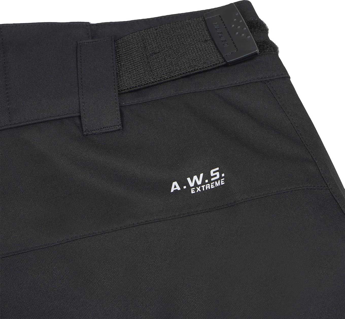 Une protection renforcée contre les intempéries est assurée par des coutures étanches qui bloquent également l’air froid. La coupe standard, légèrement ample, permet une grande liberté de mouvement, tandis que le système de taille ajustable maintient une tenue optimale de la première à la dernière descente.