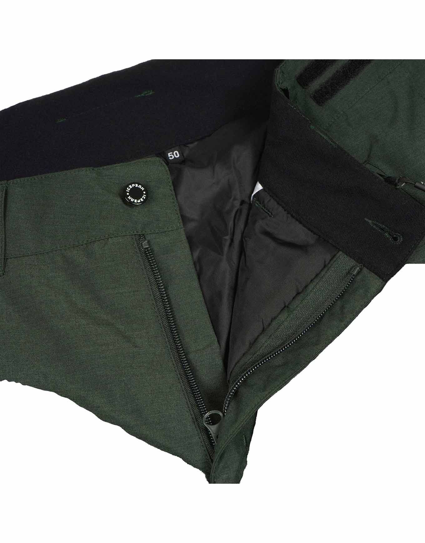 Pantalon de ski Icepeak Connel Dark Green homme : tissu imperméable sans PFC, isolation légère, coutures étanches et taille ajustable pour une protection complète sur piste.