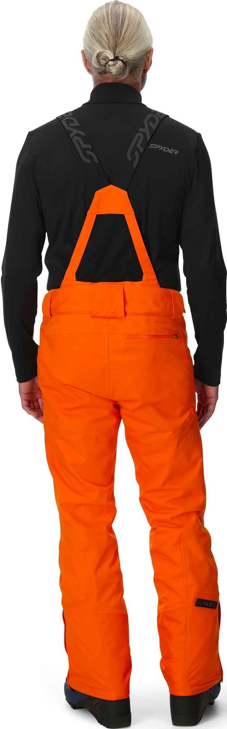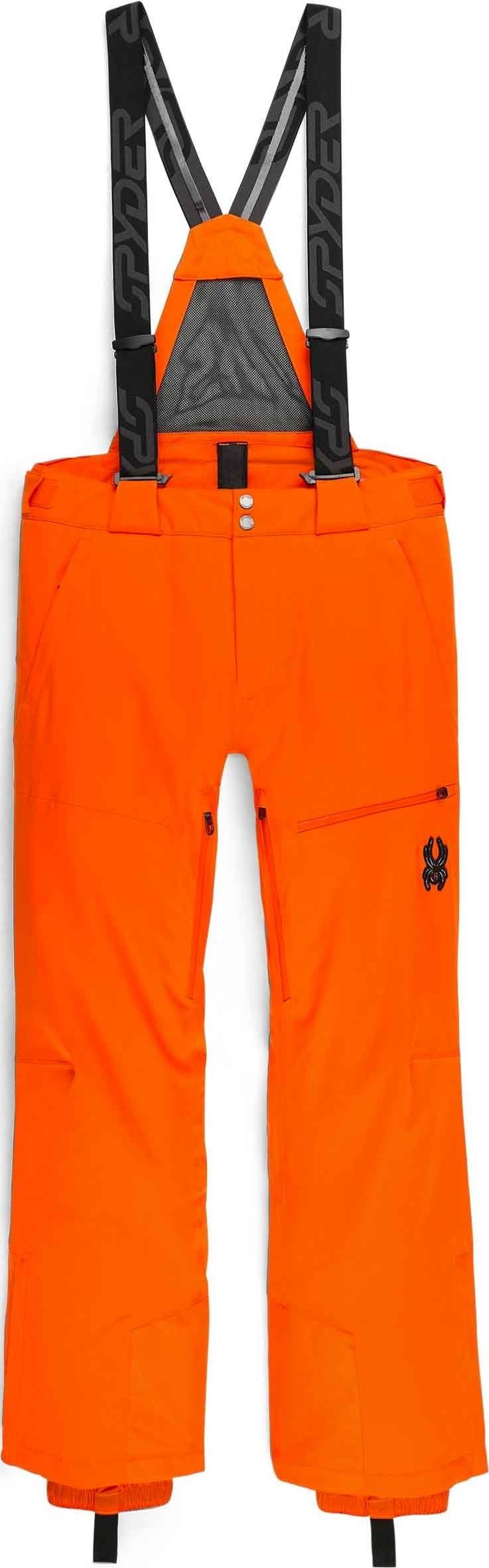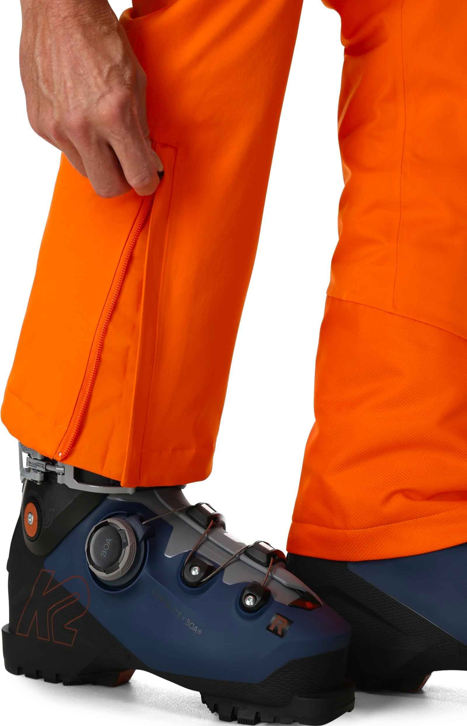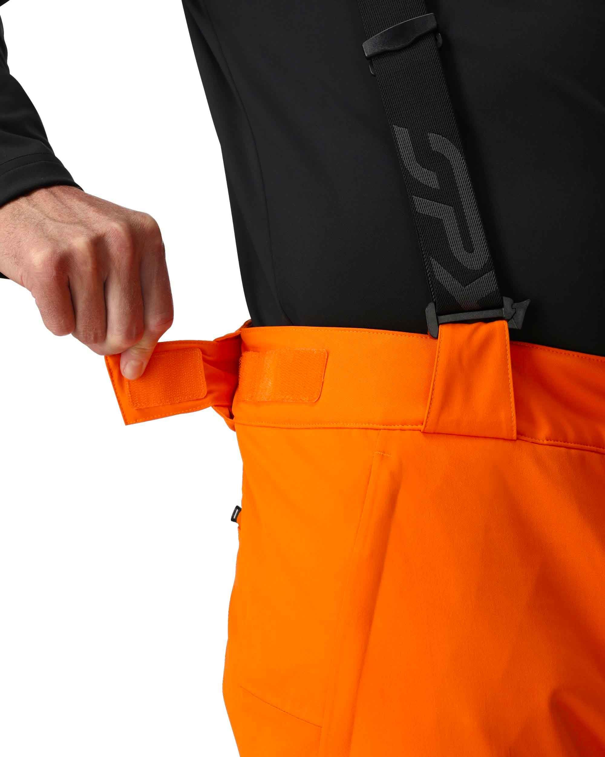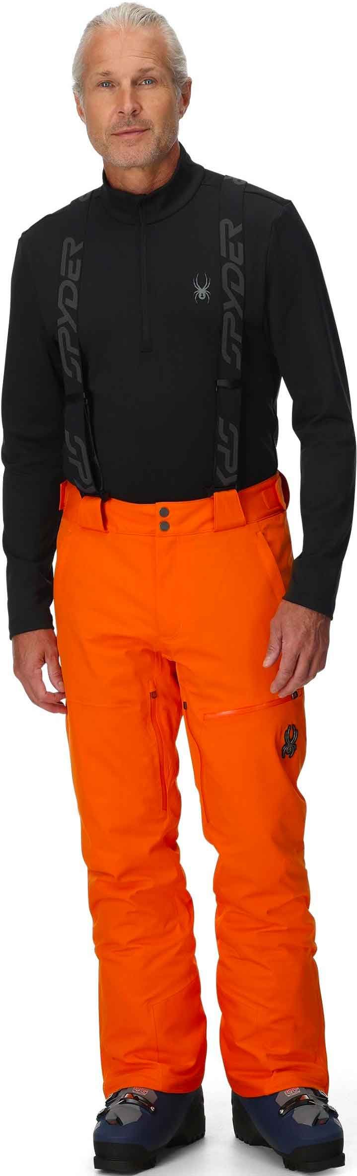 Pantalon ski homme Spyder Dare Flash Orange, coupe droite : membrane EXO SHIELD 30K stretch, isolation Primaloft® Silver ECO, taille réglable, zips ventilation YKK®, genoux articulés, coutures scellées et guêtres pare-neige.