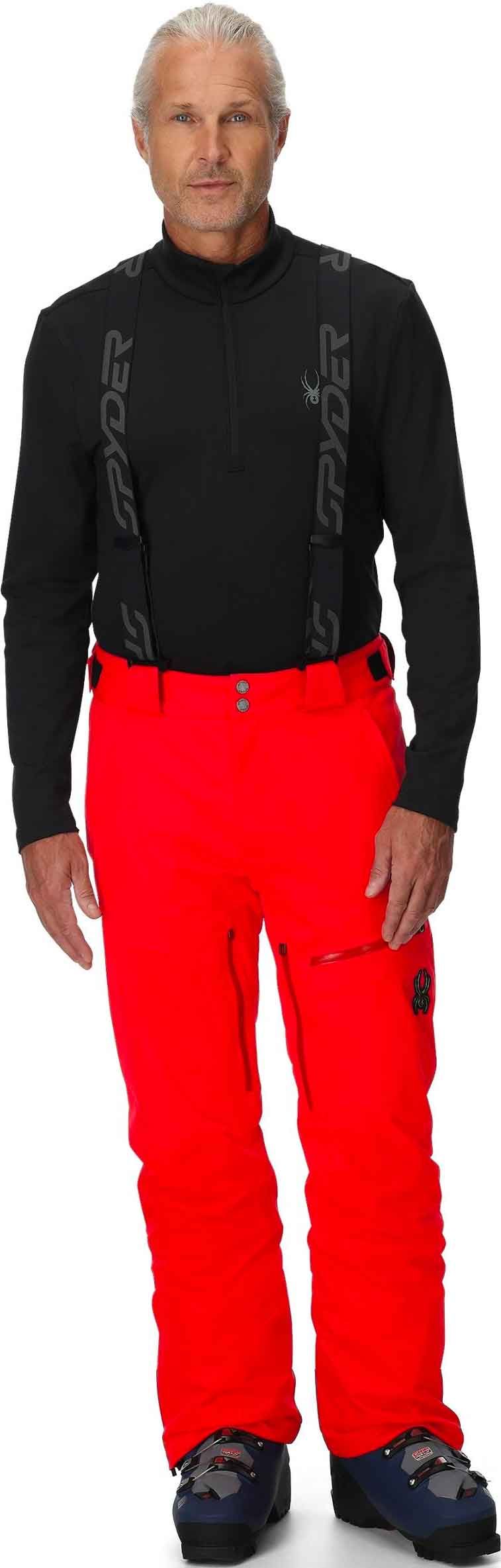 Pantalon ski homme Spyder Dare Lenghts Red, coupe droite, membrane EXO SHIELD 30K stretch, isolation Primaloft® Silver ECO, taille réglable, bretelles amovibles, zips ventilation YKK®, genoux articulés, coutures scellées.