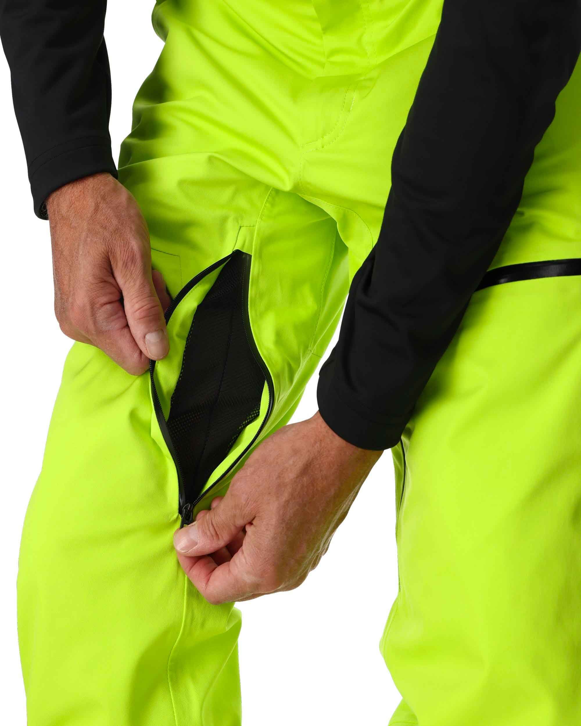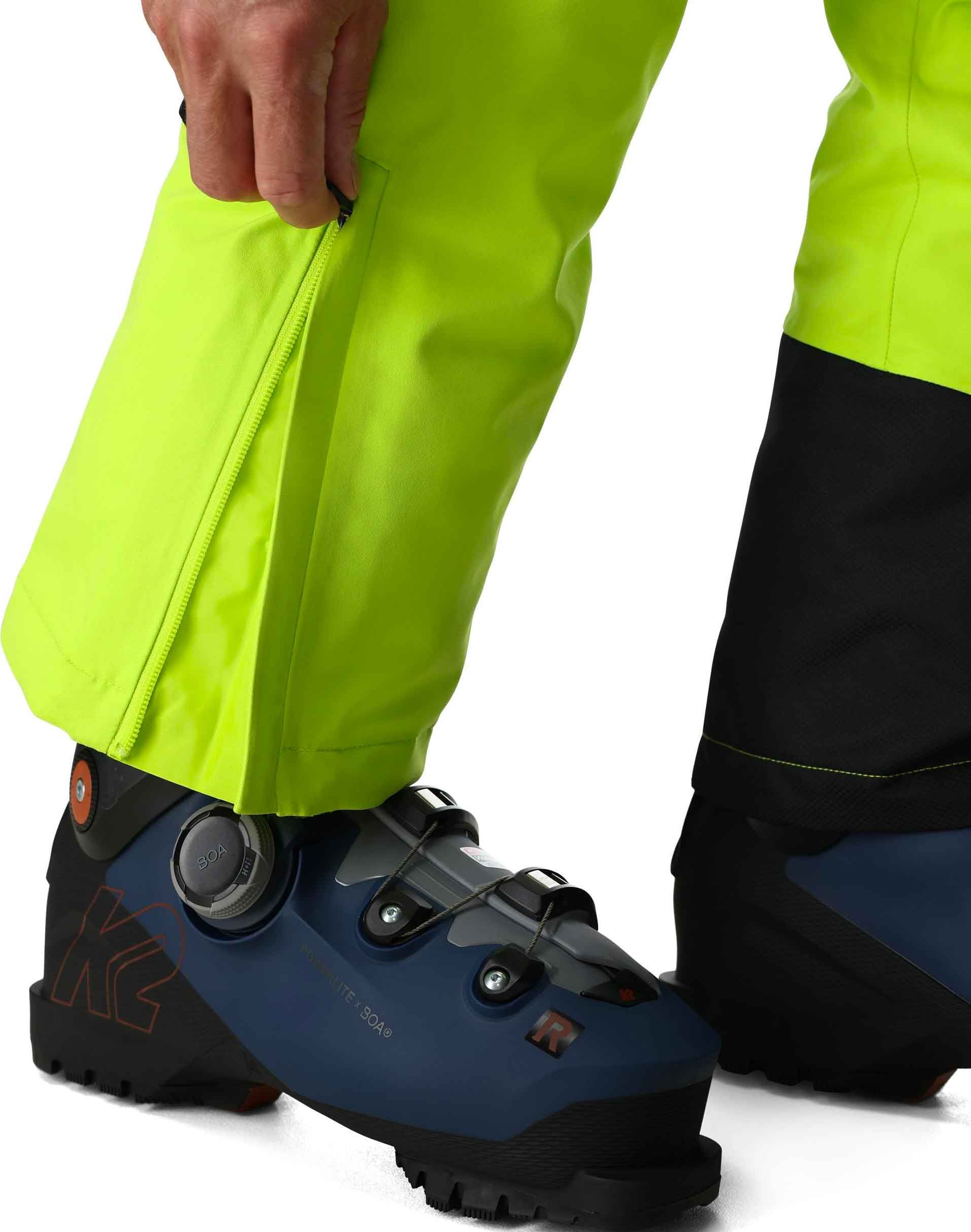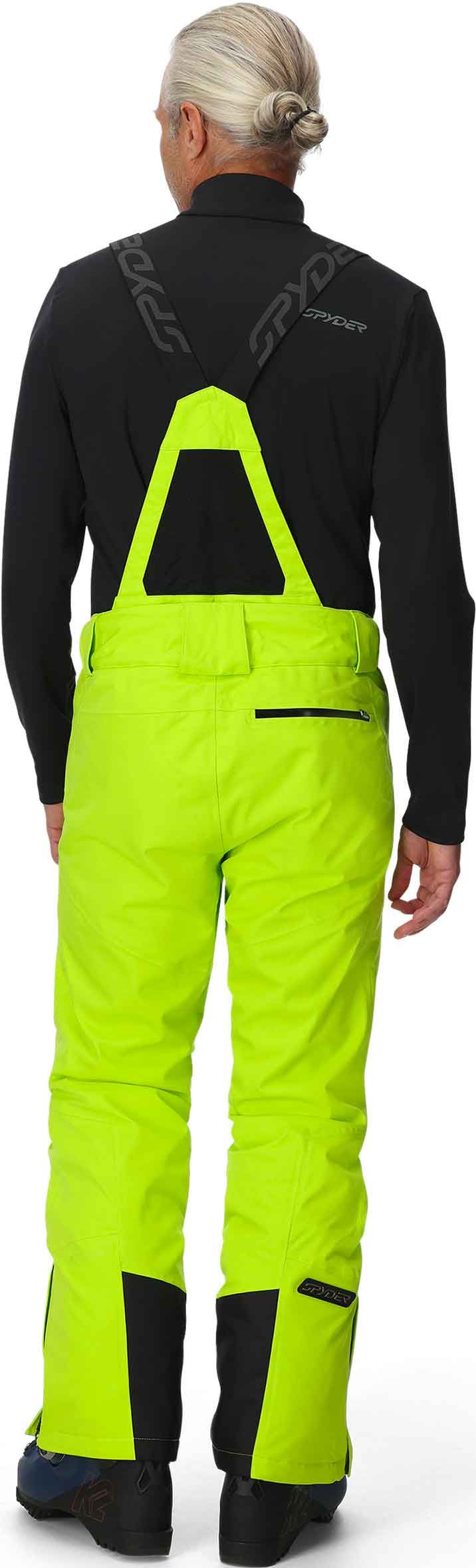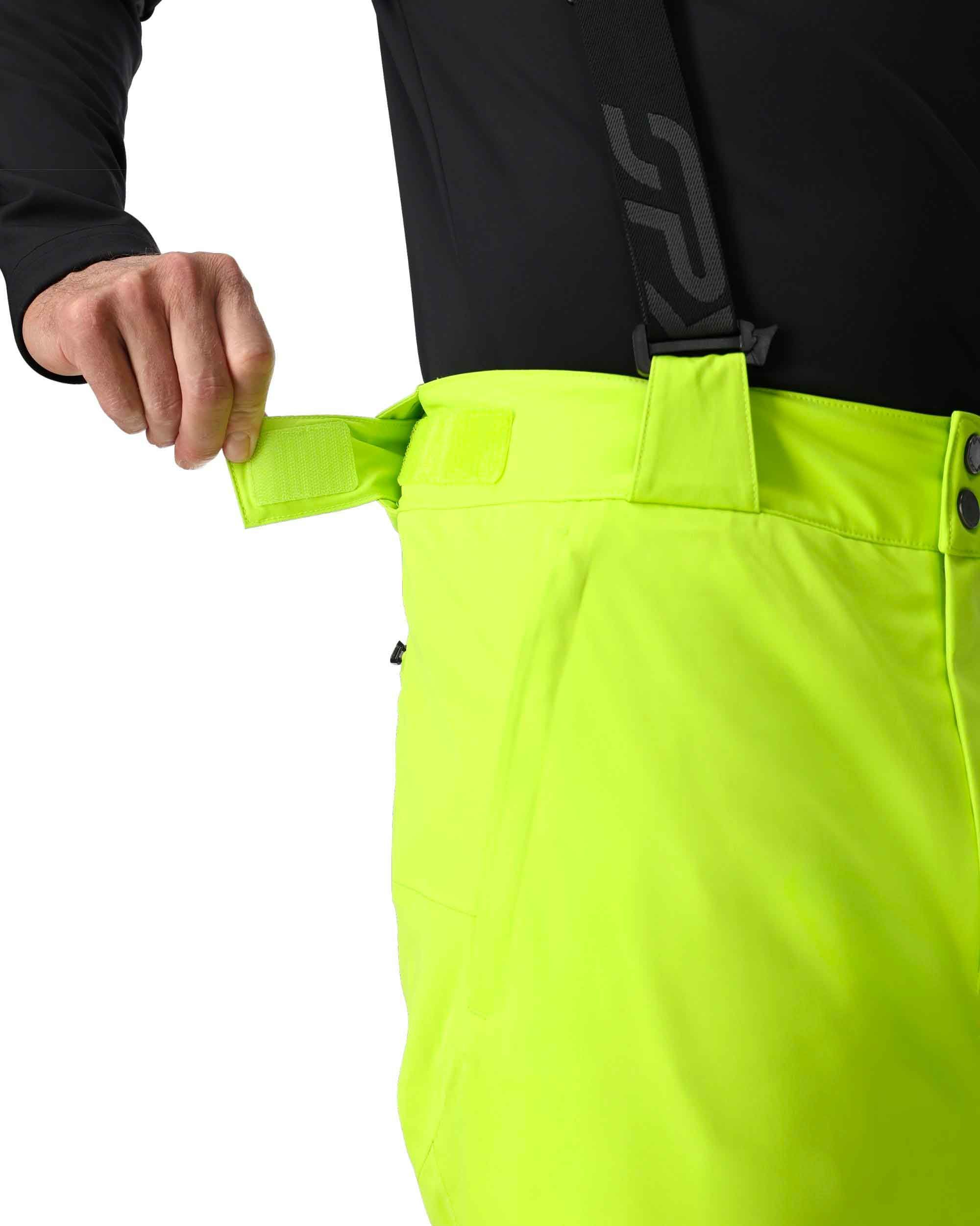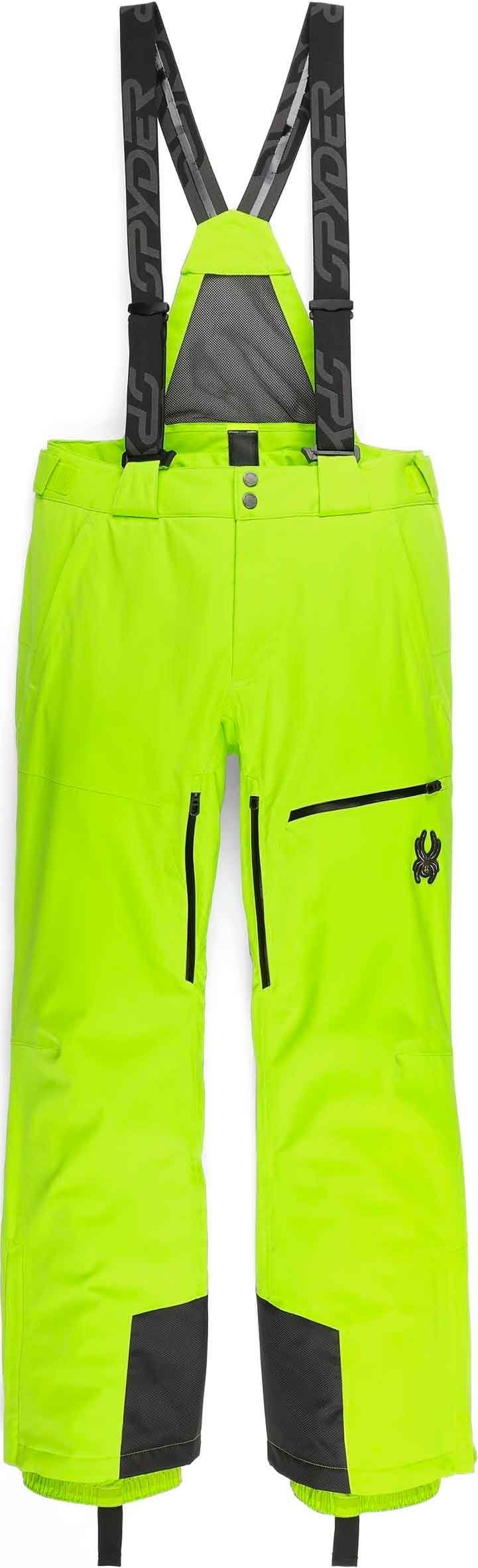 Pantalon de ski homme Spyder Dare Lime, coupe droite, membrane EXO SHIELD 30K stretch et isolation Primaloft® Silver ECO pour chaleur et imper-respirabilité. Ventilation cuisses, genoux articulés, guêtres pare-neige et renforts stratégiques.