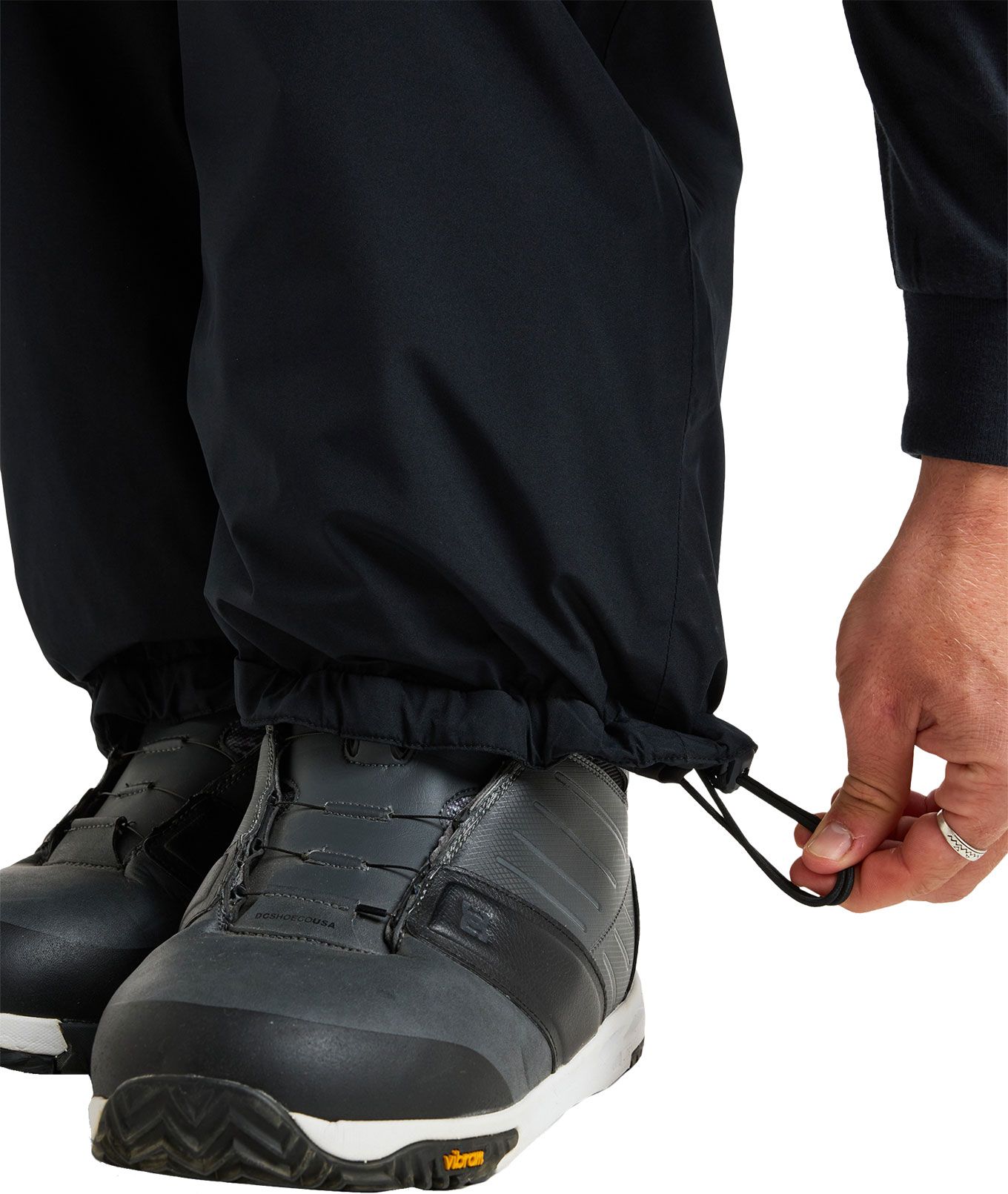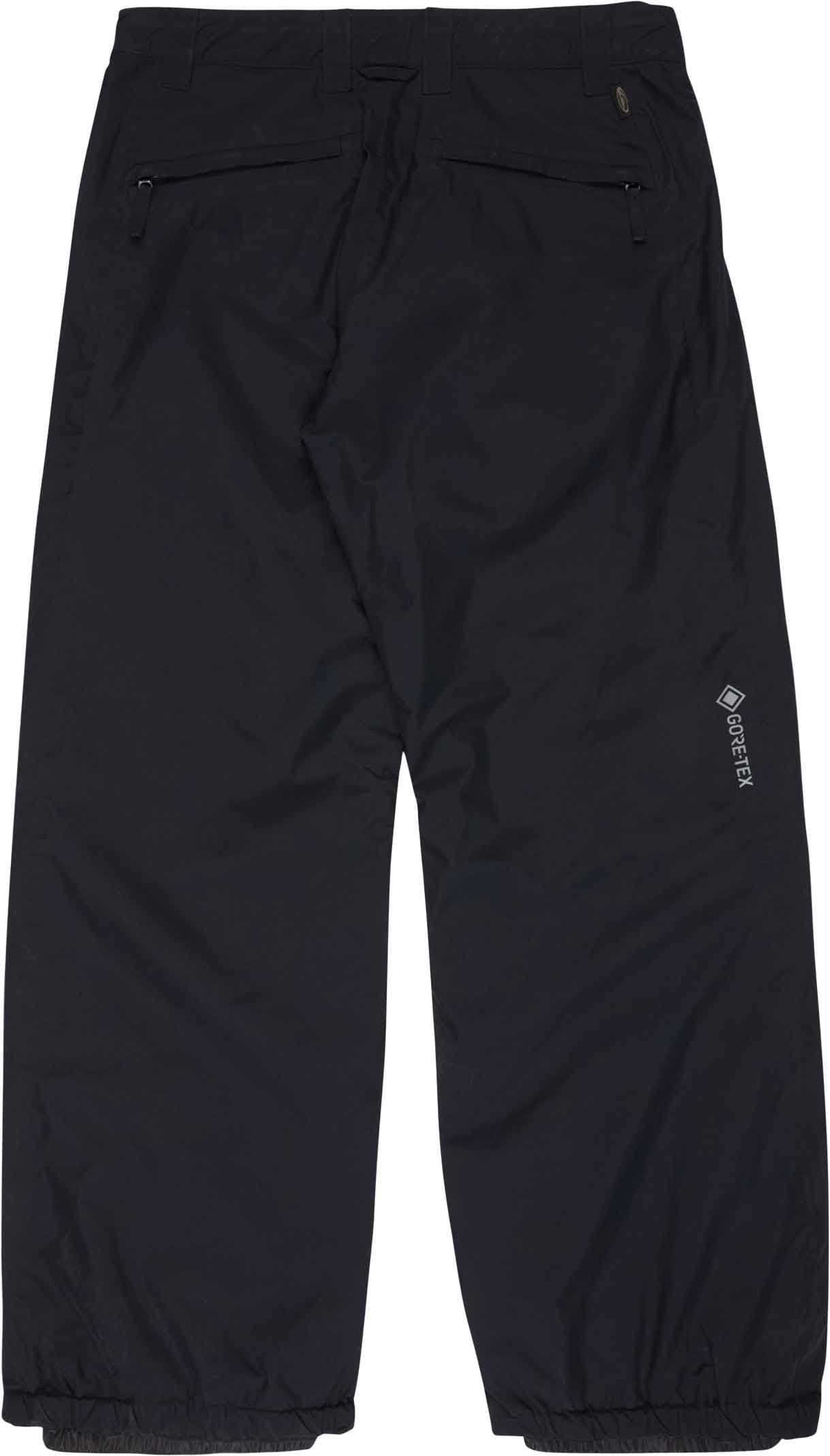 La fabrication de ce pantalon repose sur 64% de fibres recyclées issues de bouteilles plastiques, complétée par un traitement déperlant durable exempt de PFC. On y trouve des coutures entièrement étanchées, une doublure légère en taffetas avec tricot brossé, un ajustement de la taille par cordon de serrage, des poches chauffe-mains équipées de fermetures zippées ainsi que des aérations doublées en mesh.