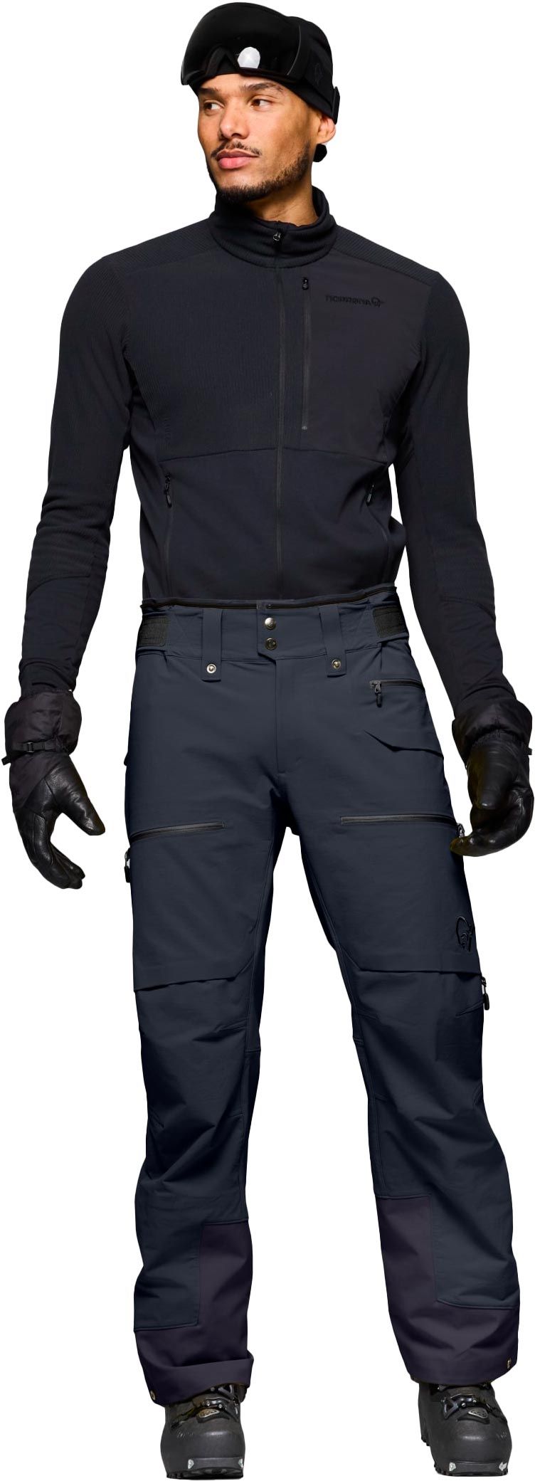 Le pantalon softshell Norrona Lofoten Flex1 Pants Caviar Black pour homme allie coupe-vent, respirabilité et grande liberté de mouvement pour le freeride, le ski de randonnée et les activités outdoor.