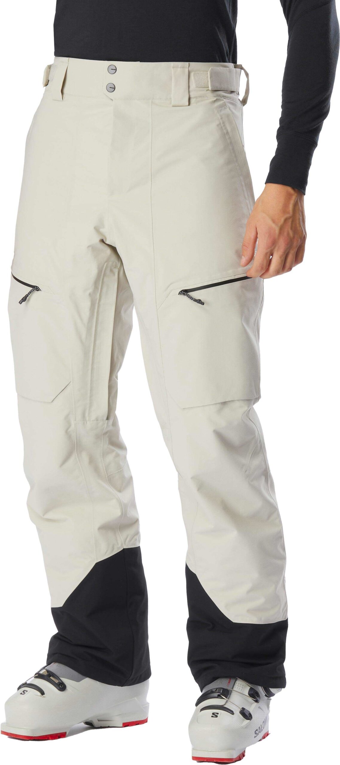 Pour réguler la température, des ventilations zippées positionnées à l’intérieur des cuisses facilitent une ventilation rapide. Les guêtres intérieures bloquent l’infiltration de la neige, alors que les renforts en Cordura positionnés au niveau des chevilles assurent une résistance accrue face aux impacts de carres et à l’abrasion.
