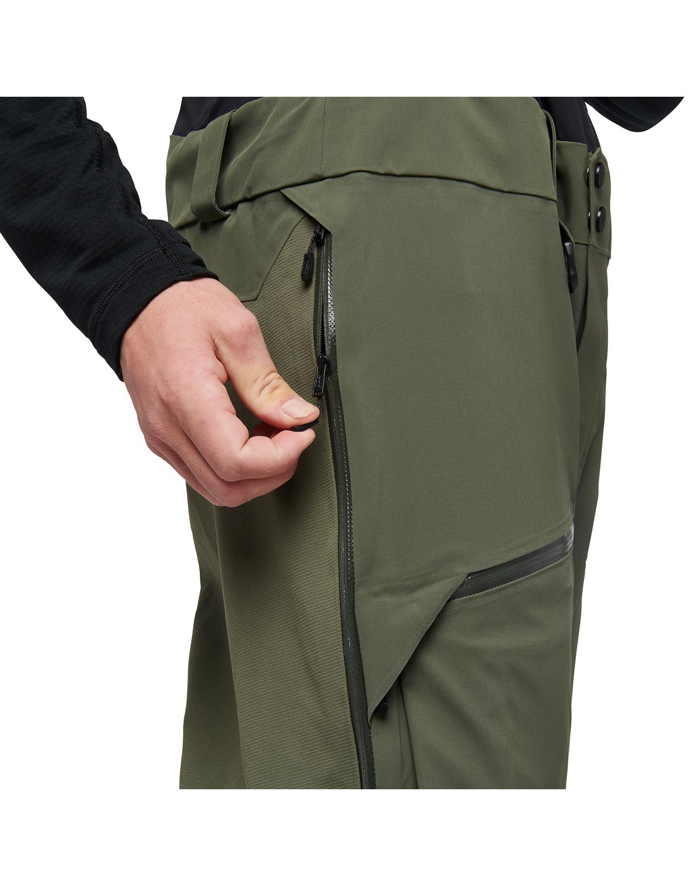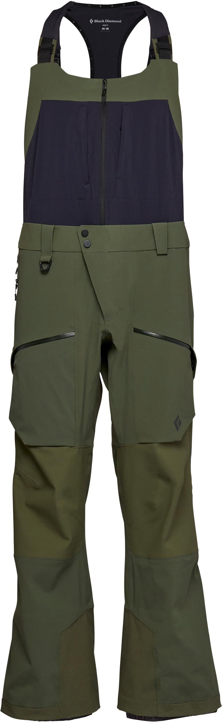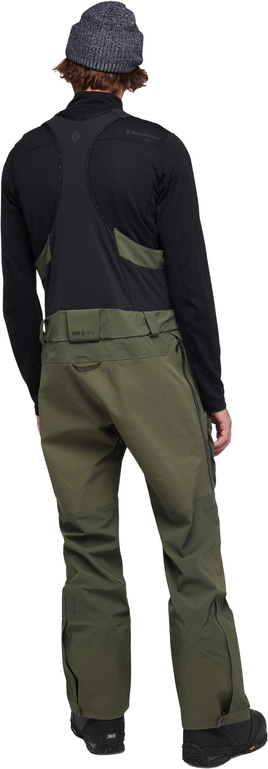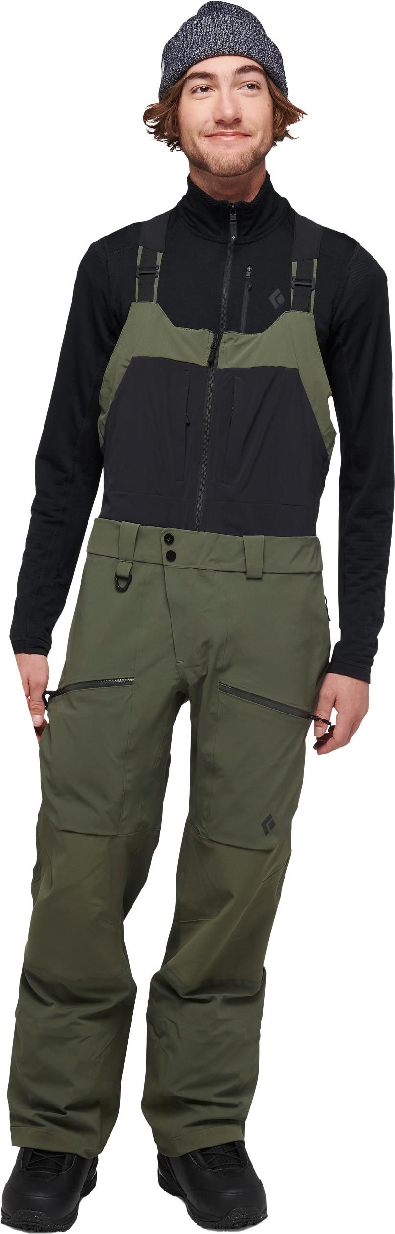 Salopette Black Diamond Recon Stretch Pro Bibs Tundra pour homme, imperméable et respirante BD.dry™, avec fermetures étanches, bretelles ajustables et guêtres intégrées pour ski poudreuse.