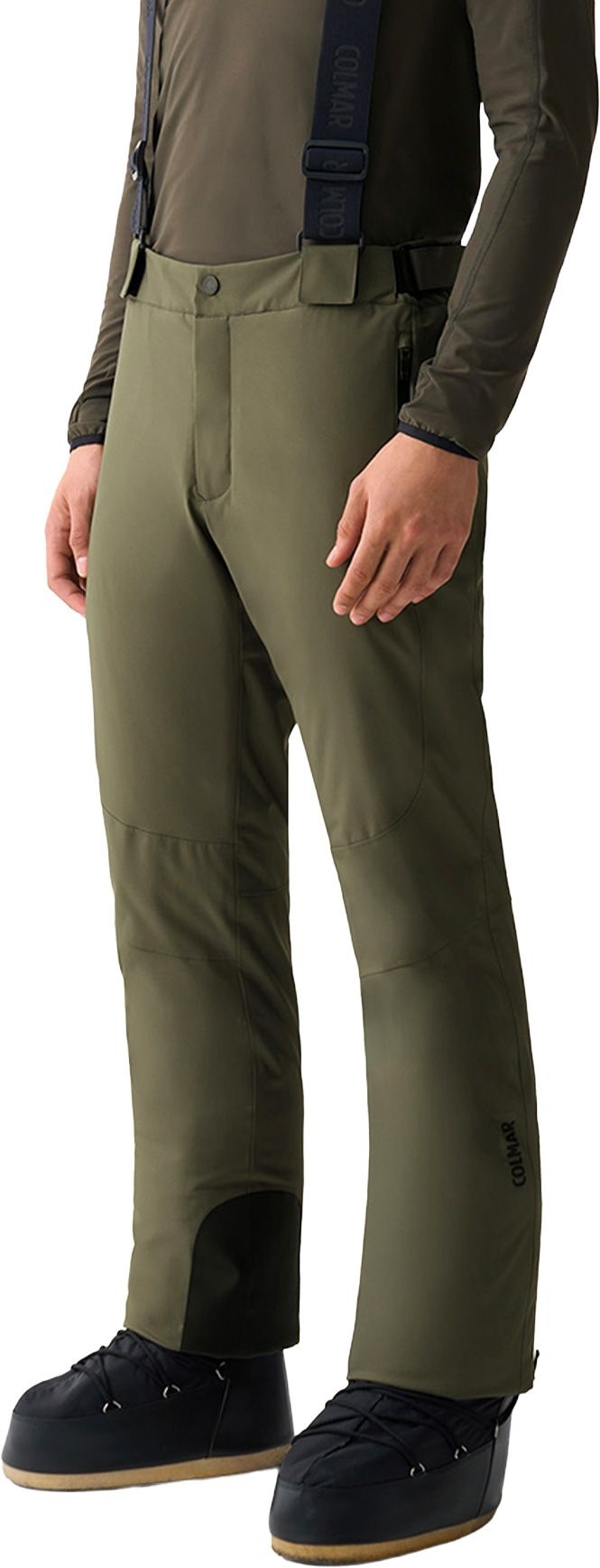 Pantalon de ski Men Ski Pants Woodland en tissu stretch recyclé, imperméable et respirant, avec doublure douce, rembourrage 80 g éco-conçu, bretelles amovibles, genoux préformés et guêtres intégrées pour chaleur et liberté de mouvement sur les pistes.