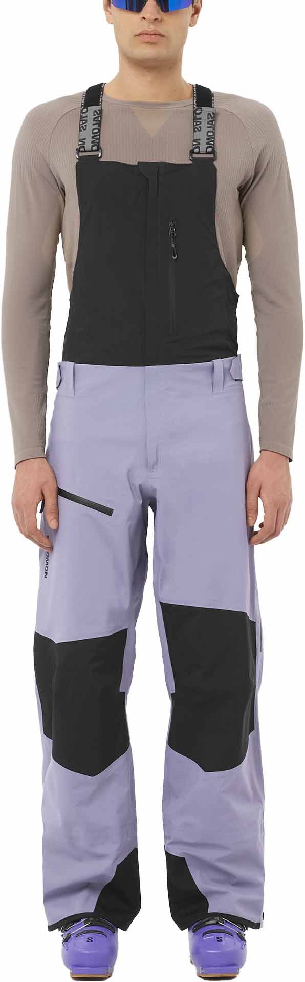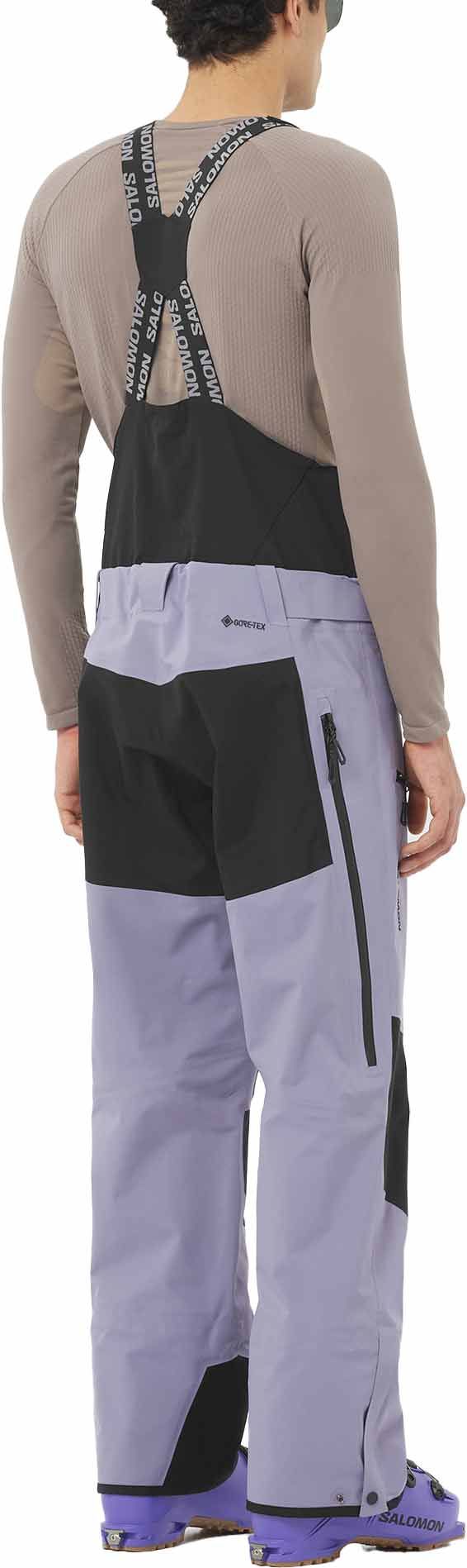 Salopette Moon Patrol GTX Bib Blue Granite Salomon homme : protection GORE-TEX 3 couches, respirabilité active, coupe Motion Fit 360°, matière 100 % recyclée, guêtres intégrées et zips latéraux 3/4 pour skier et rider en toute liberté.
