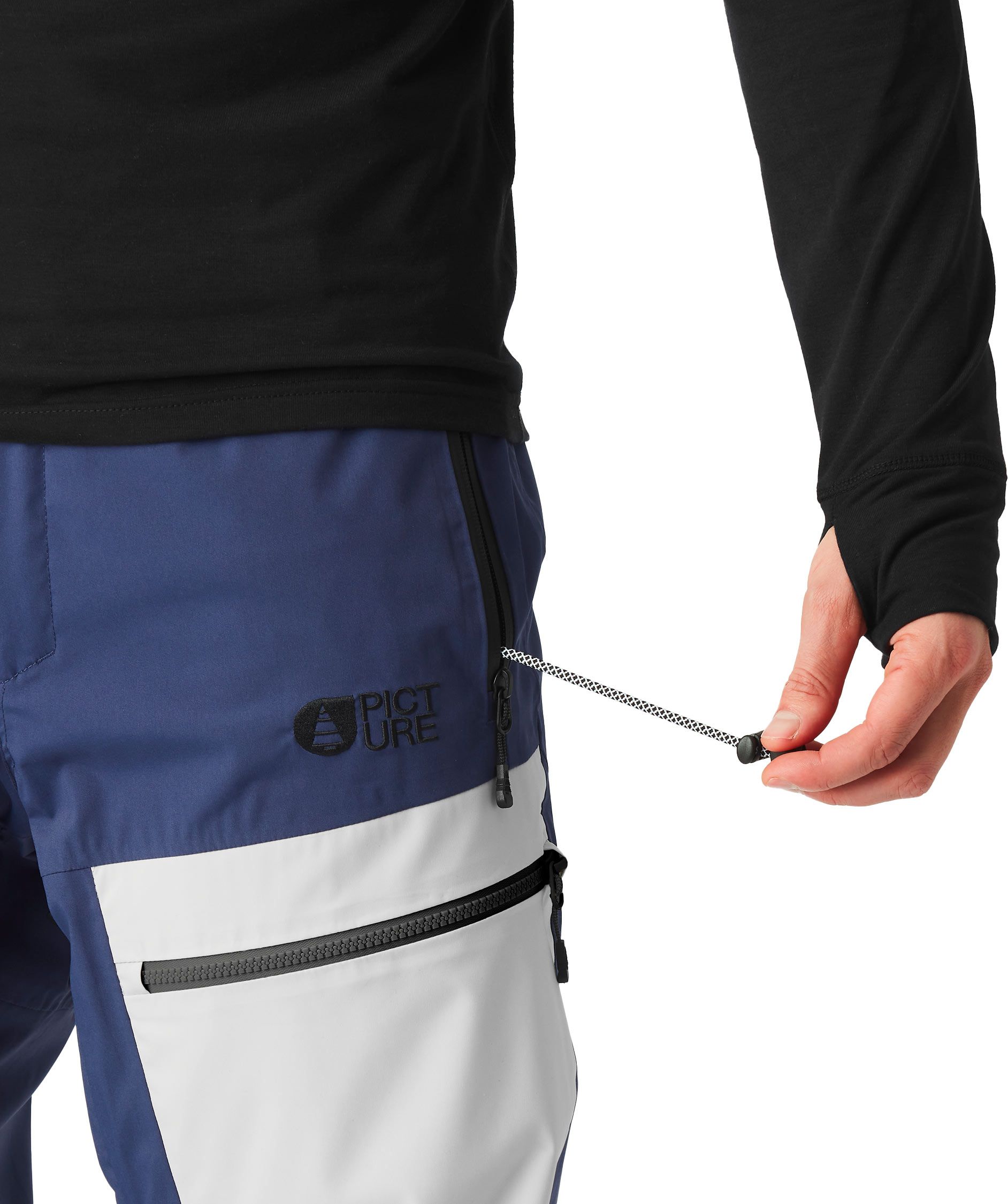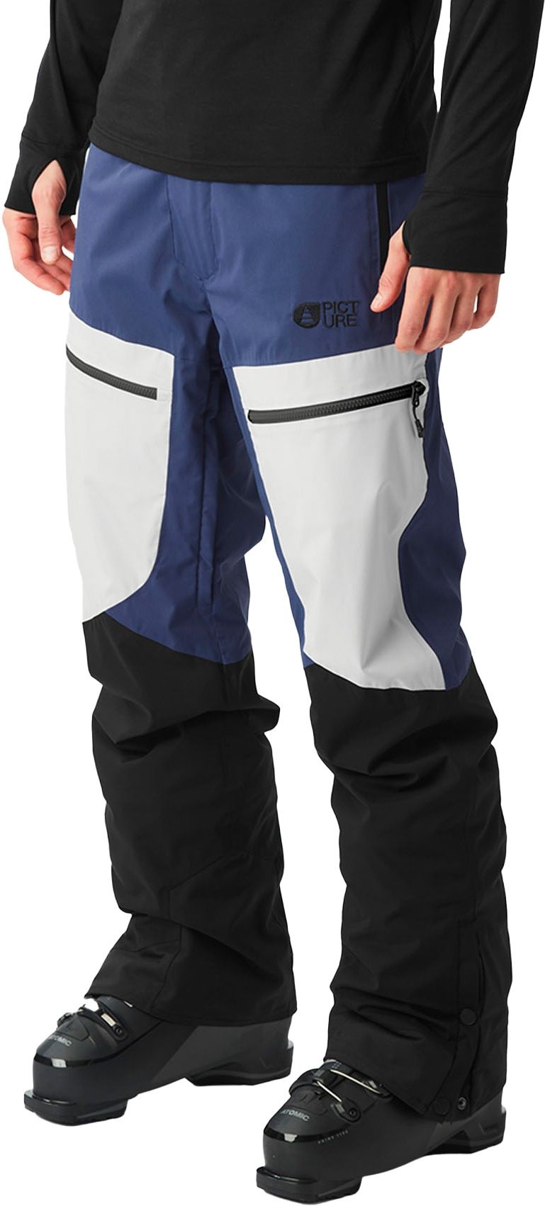 Le pantalon de freeride Naikoon Patriot Blue 2 couches Picture Organic Clothing allie membrane Dryplay 20K/20K, doublure Coremax chaude-respirante et traitement Teflon Ecoelite sans PFC pour tenir au sec du park aux lignes vierges.