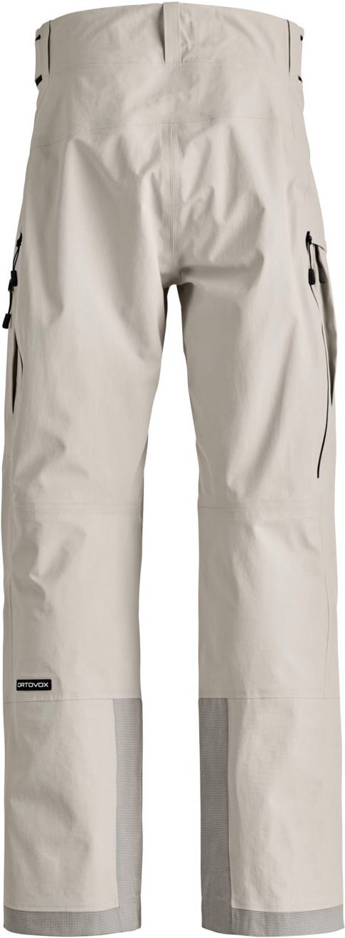 Pantalon de freeride Ortovox Ravine Free 3L Pant White Tea homme, coupe décontractée 586 g, laminé OVX.SHIELD 3L imper-respirant, laine mérinos au dos, aérations latérales, genoux préformés, guêtres intégrées et renfort Dyneema®-CORDURA® contre les carres.