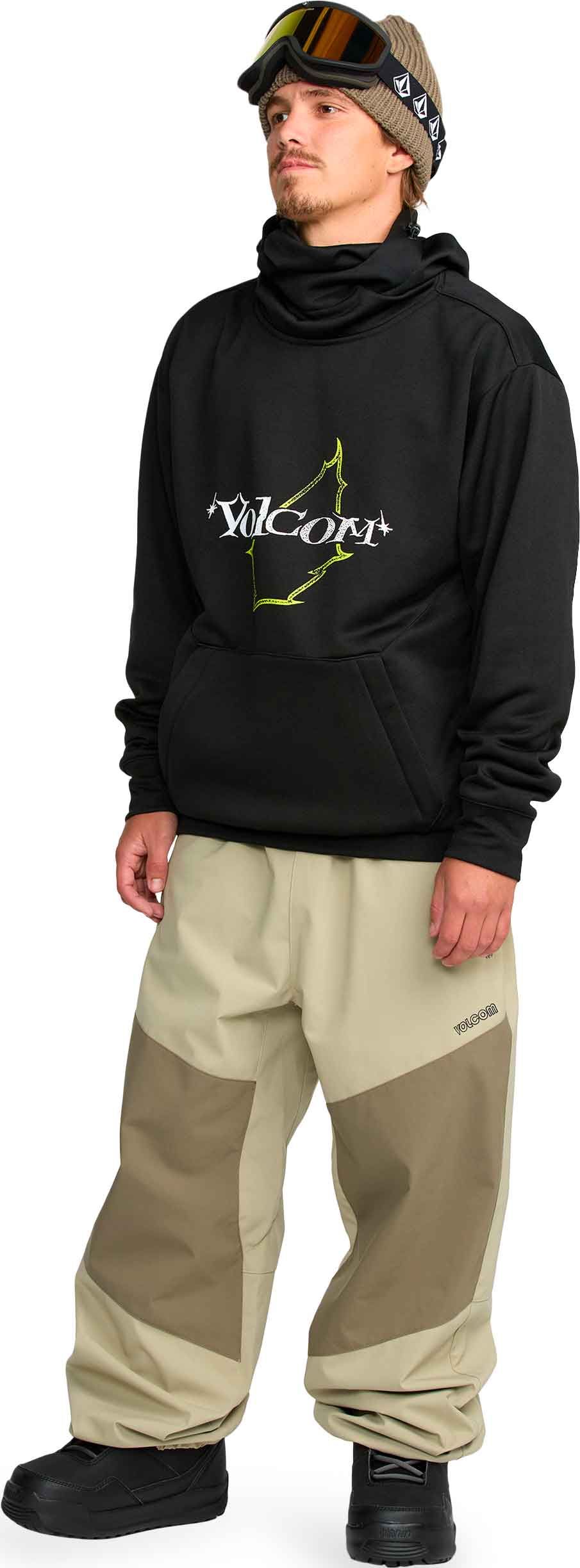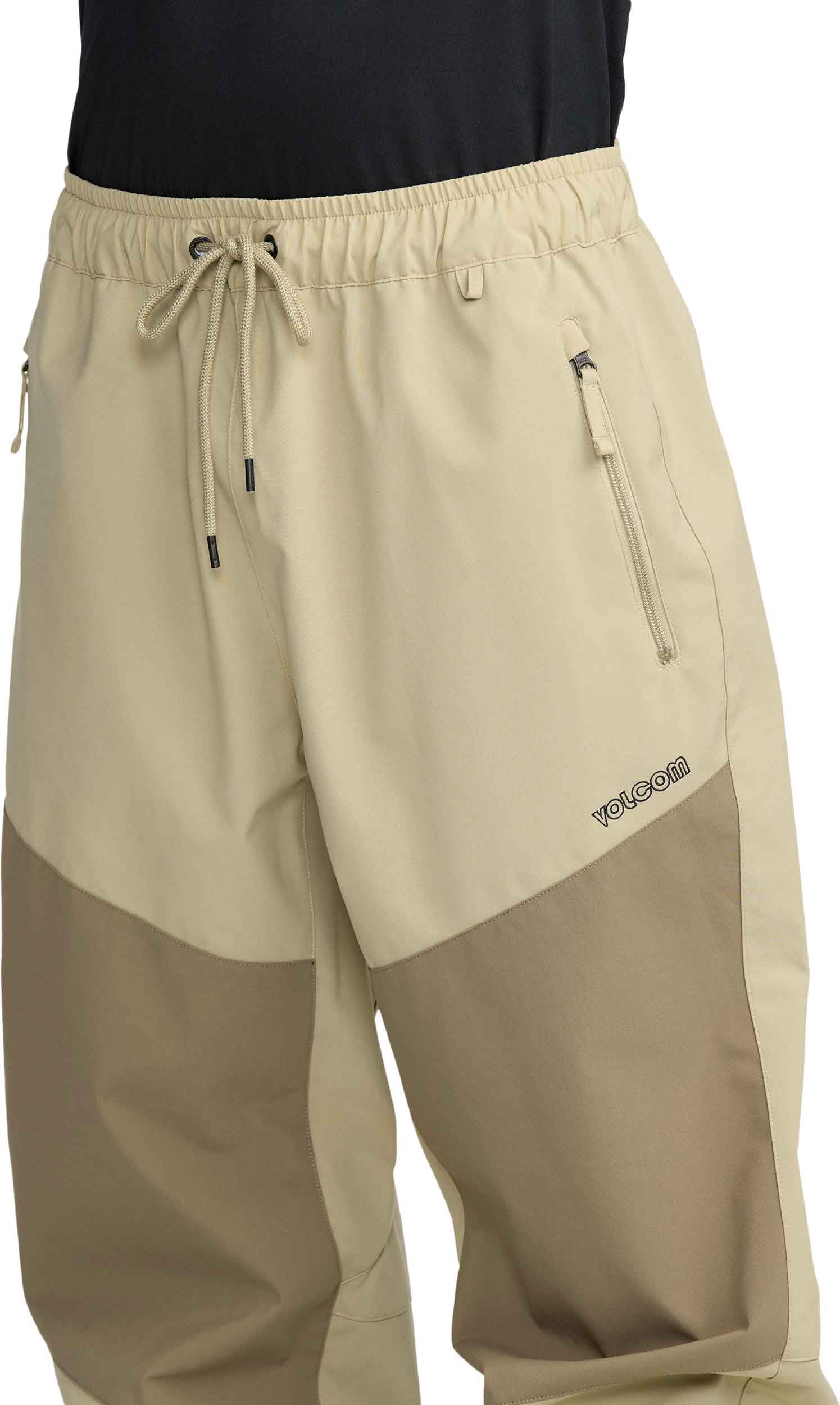 Pantalon ski Volcom Slashslapper Pant Moss Green en V-Science 3 couches déperlant sans PFAS, coupe baggy, ceinture élastique, poches chauffe-mains et ourlets élastiqués anti-neige.