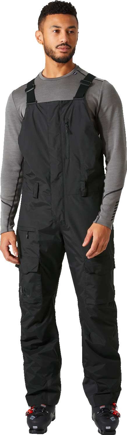 Salopette de ski Helly Hansen Sogn Bib Cargo Pant imper-respirante HELLY TECH® avec isolation PrimaLoft® Black Eco, coupe articulée extensible, bretelles ajustables, renforts et système RECCO® pour freeride et ski de randonnée.