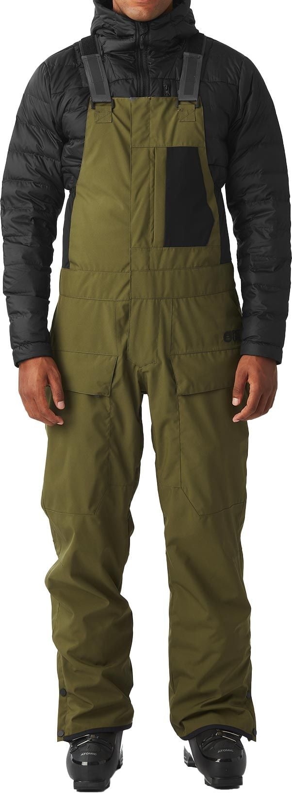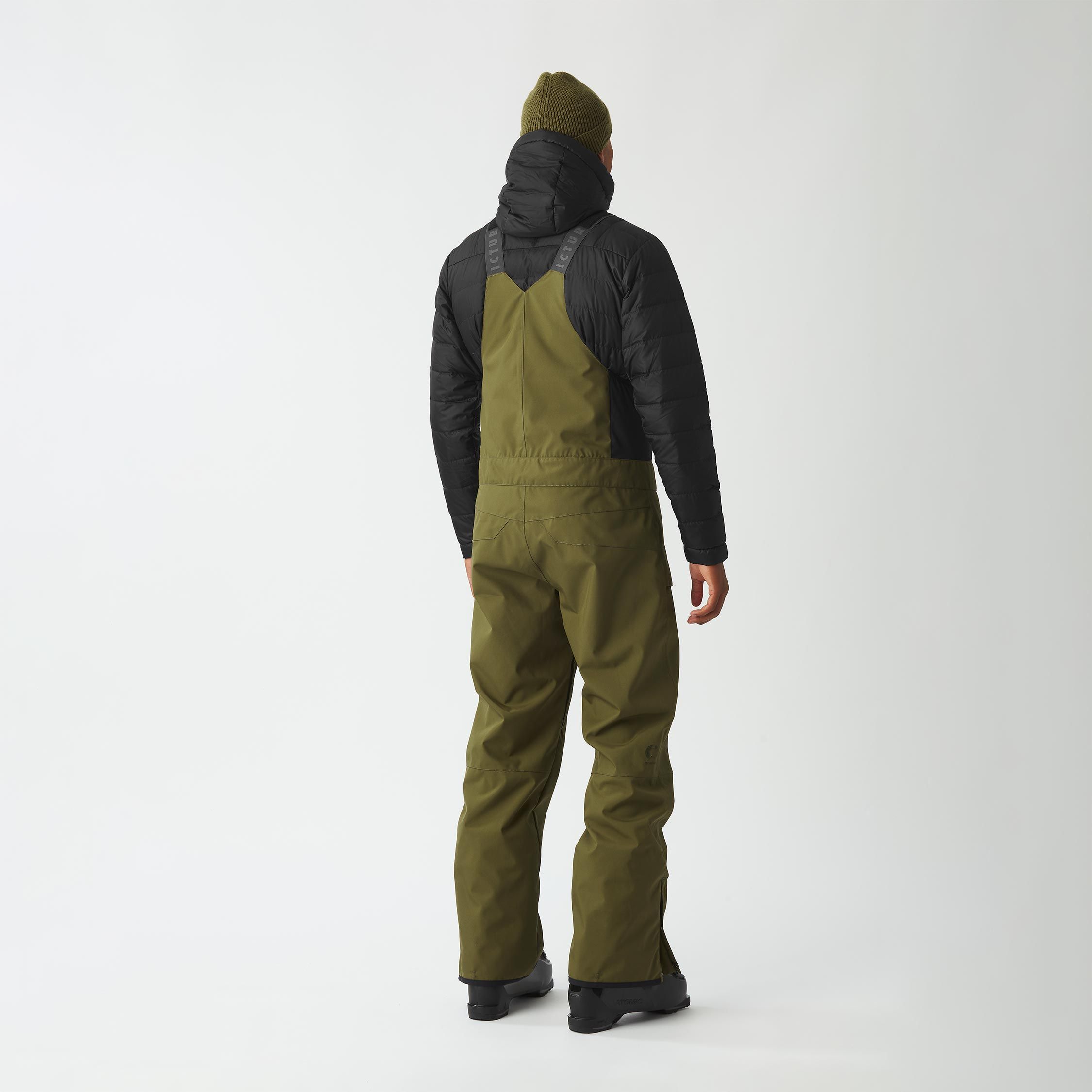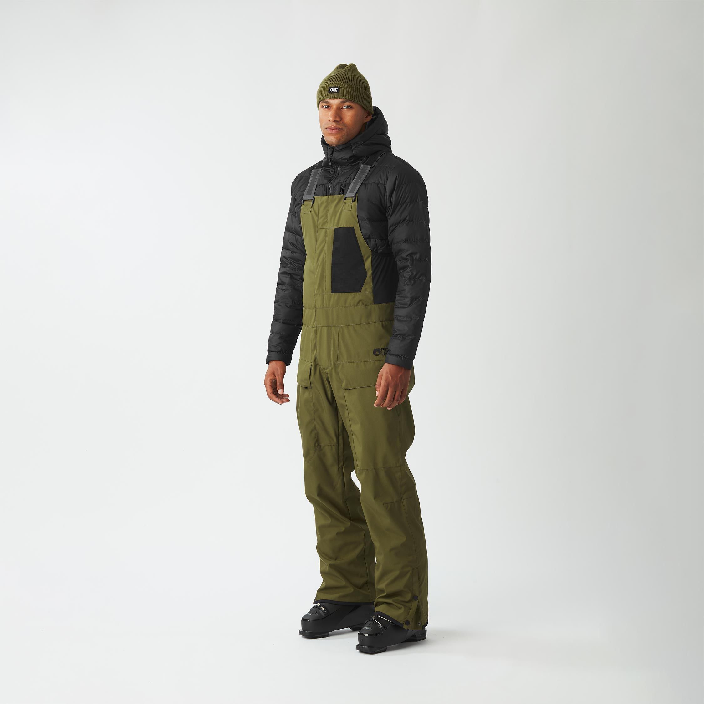 Salopette de ski Testy Bib Tobacco Picture Organic Clothing homme, membrane Dryplay 10K/10K, Teflon Ecoelite™ sans PFC, bretelles réglables, ventilations zippées, coutures étanches et guêtres pare-neige pour chaleur et protection optimales.