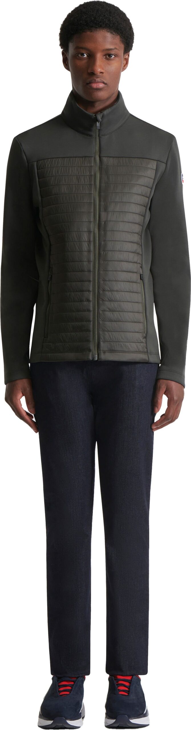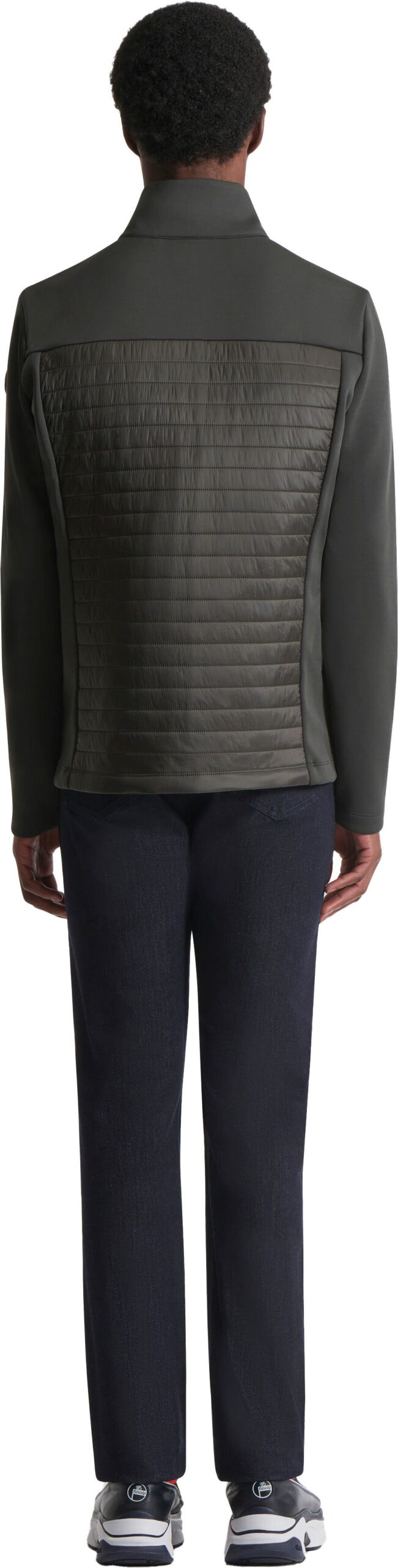 La silhouette se distingue par une coupe très ajustée, un col montant protecteur ainsi que deux poches pour les mains. Minimaliste et contemporaine, cette pièce se porte isolément pendant l’intersaison ou s’intègre en sous-couche sous un manteau d’hiver selon les besoins.