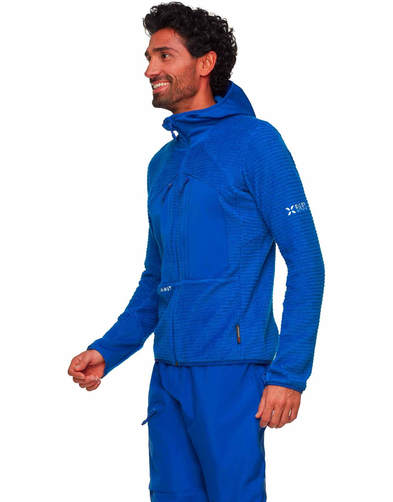 Mammut Eiger Nordwand Pro ML Air Hooded Jacket polaire homme : légère, chaude et respirante avec isolation Polartec® Alpha® Direct, inserts stretch en nylon recyclé, coupe alpine et capuche casque-compatible.