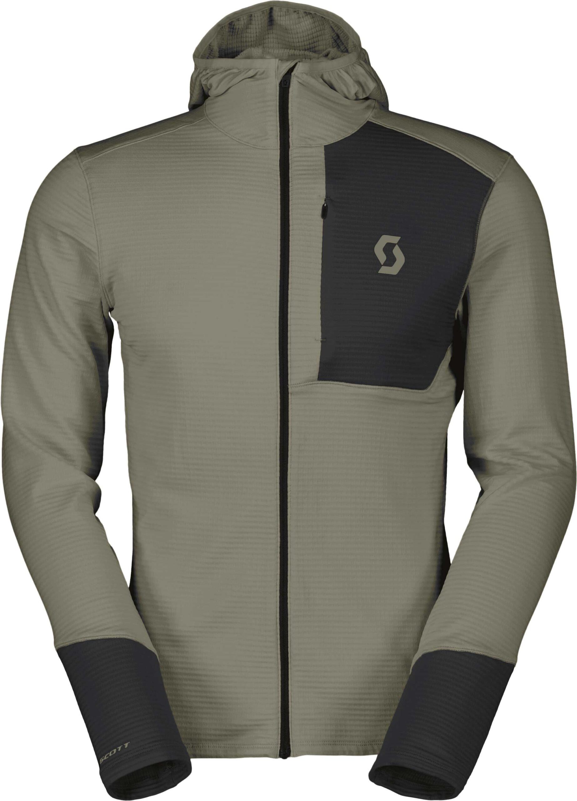 Sweat à capuche Scott Defined Light Grey/Black pour homme, stretch et léger, en matière recyclée : confort respirant, coupe athlétique et liberté de mouvement DUROxpand pour vélo, running, ski ou escalade.