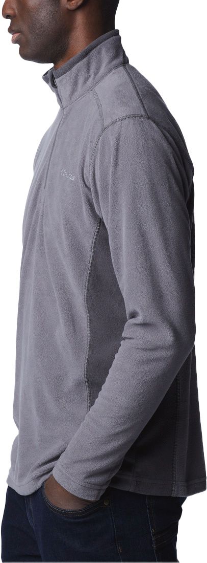 Columbia Klamath Range II Half Zip Grey Shark, polaire ultra-légère homme, s’utilise comme couche intermédiaire pour conserver la chaleur corporelle grâce à son col protecteur durant les activités hivernales en plein air.
